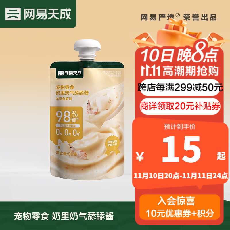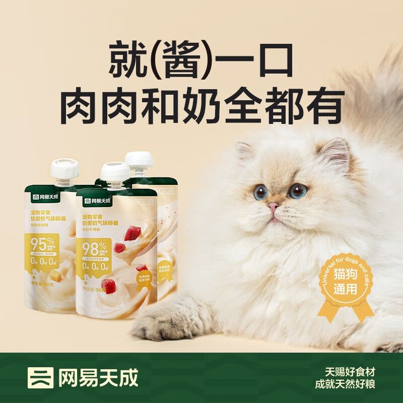 网易天成奶里奶气舔舔酱 猫狗通用湿粮软罐头 成猫成犬营养宠物零食 羊奶鱼虾味90g