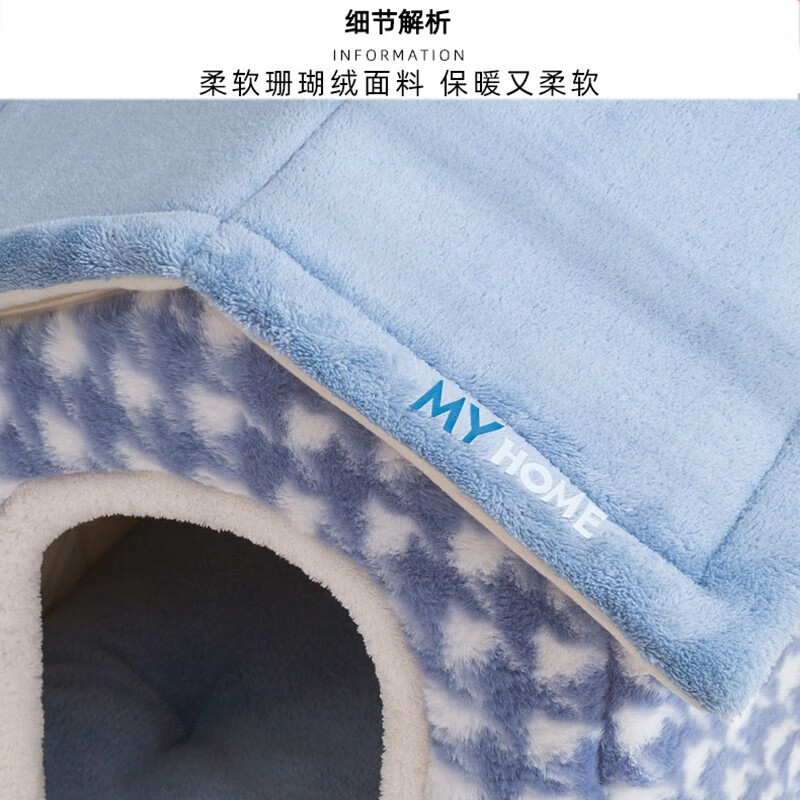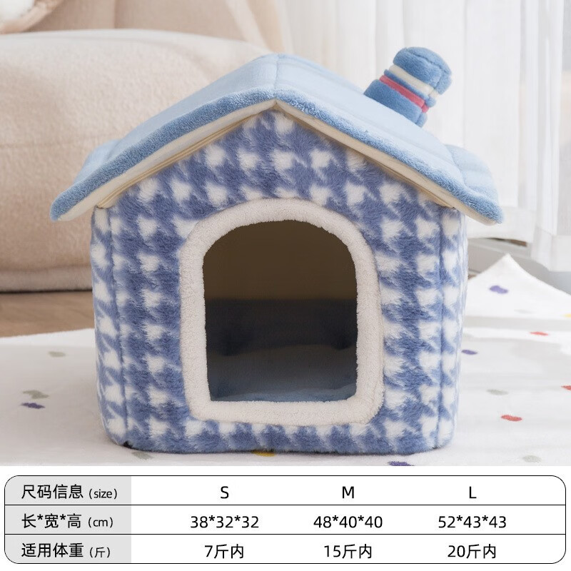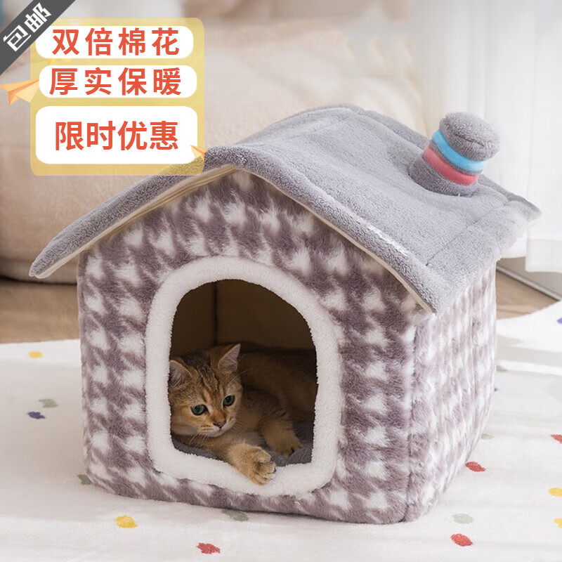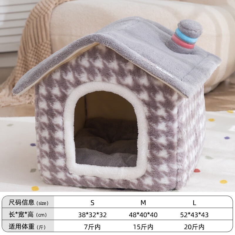 沄筱猫窝狗窝冬季保暖加大加厚可拆洗宠物窝狗房子保暖舒适屋小型犬床 棕色格子窝L【52*43*43 20斤内】