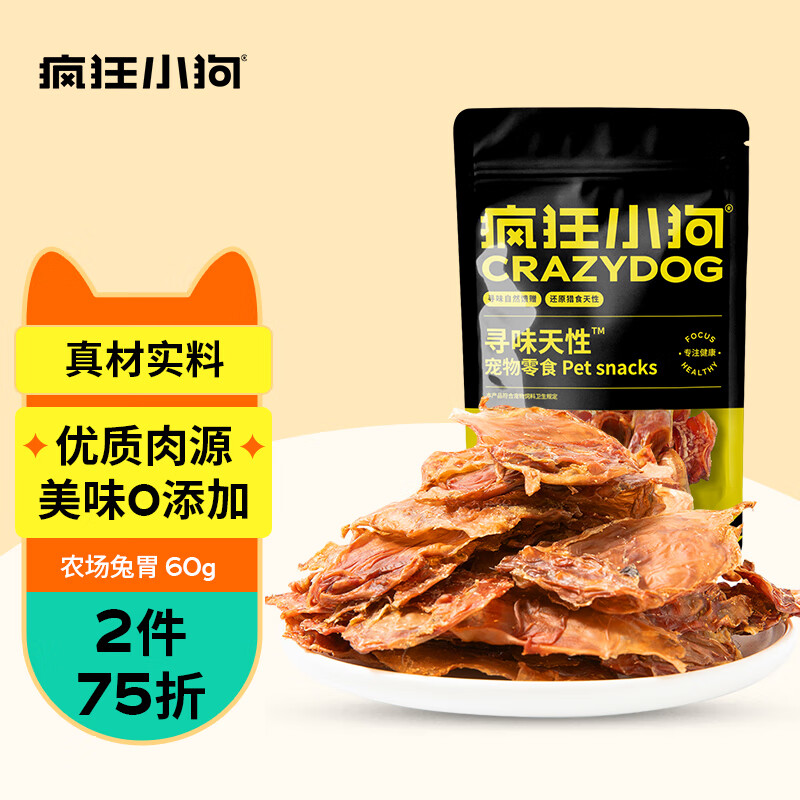 疯狂小狗 狗狗零食肉干幼犬成犬磨牙冻干训犬奖励寻味天性宠物零食 农场兔胃60g