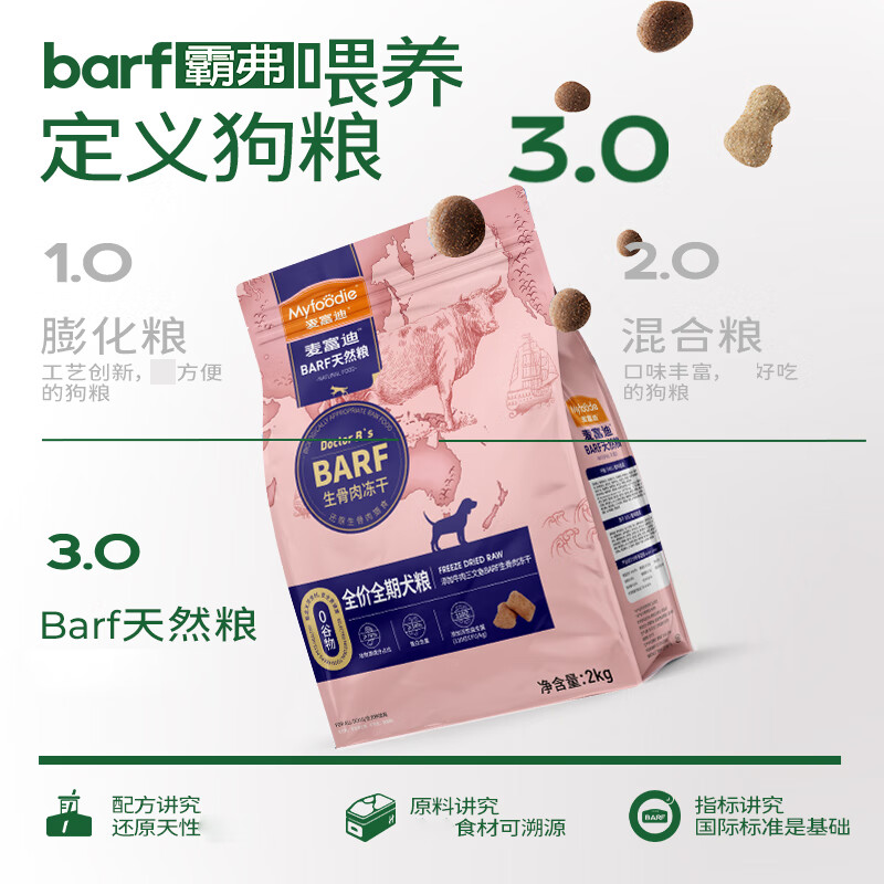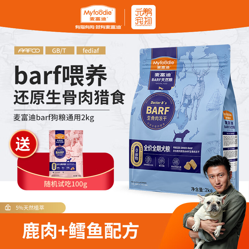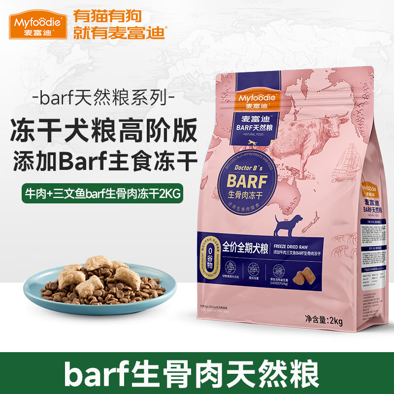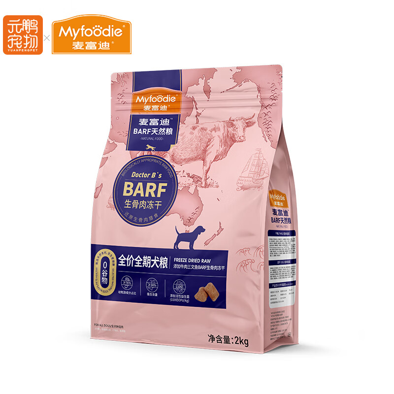 麦富迪(MYFOODIE)BARF全价狗粮 冻干生骨肉双拼粮成犬幼犬通用型犬粮 (鹿肉 鳕鱼)全阶段2kg