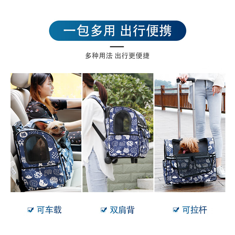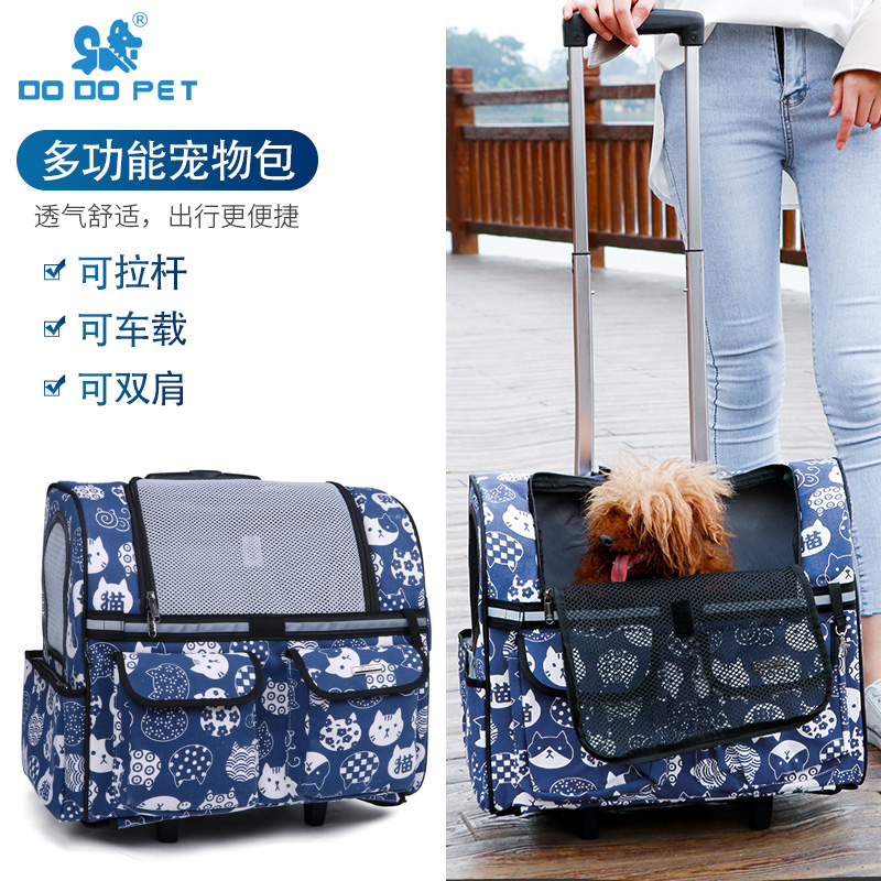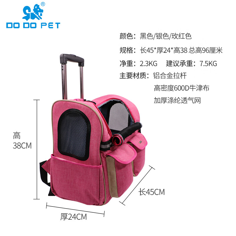 DO DO PET狗狗拉杆箱宠物拉杆包猫包猫狗外出便携双肩背包手提多功能出行箱 黑色(建议承重15斤宠物)