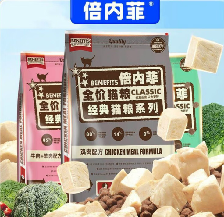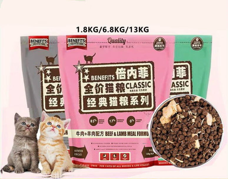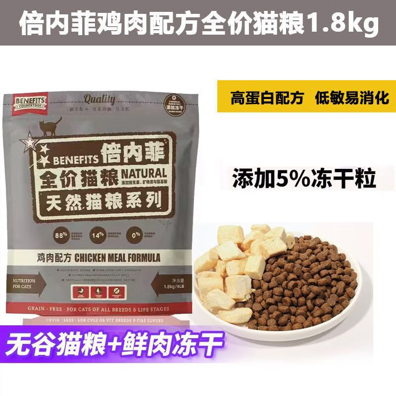 倍内菲猫粮6.8kg全价冻干猫粮生骨肉成猫幼猫通用型增肥猫粮1.8kg 经典鸡肉猫粮1.8kg[防伪可查]