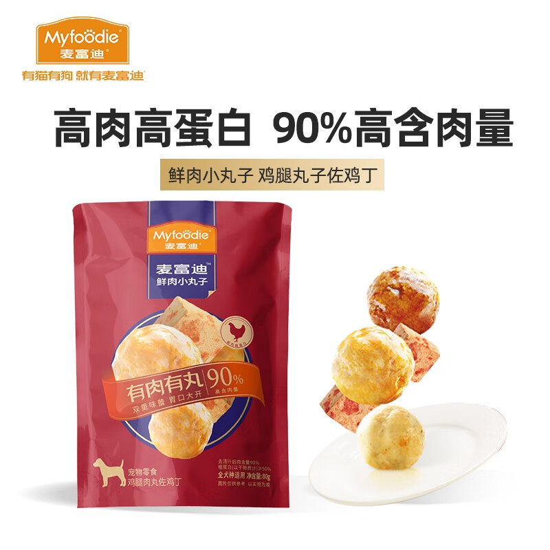 麦富迪 狗零食 鲜肉小丸子 鸡腿丸子佐鸡丁80g*10
