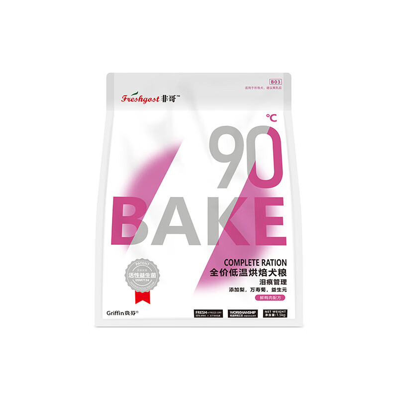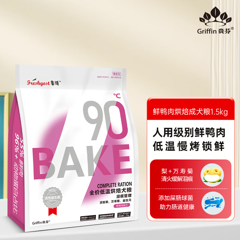 贵芬(GRIFFIN)低温烘焙狗粮 鸭肉梨 清火少泪痕 犬粮1.5kg