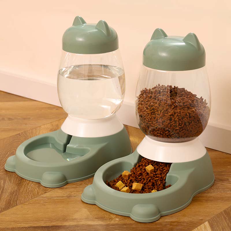 华元宠具(hoopet)猫碗食盆猫粮自动喂食器饮水机宠物狗碗狗盆水碗猫咪饭碗喝水饭盆 饮水喂食组合(鼠尾草绿) 犬猫通用
