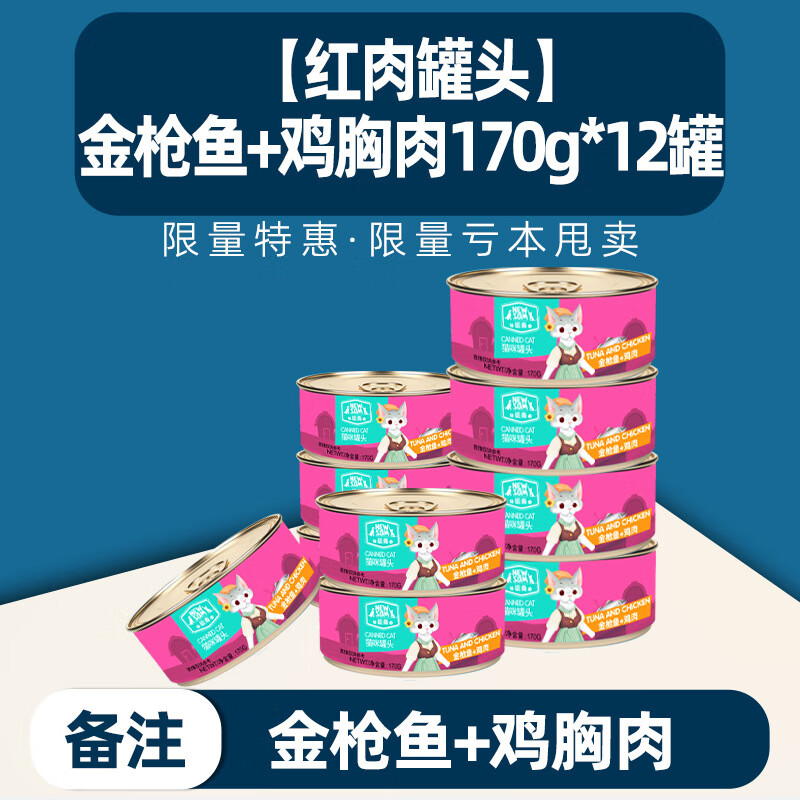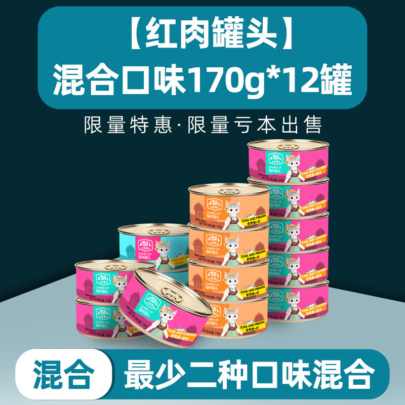 美礼猫罐头增肥营养补钙猫咪主食罐整箱成幼猫罐湿粮猫零食金枪鱼 混合口味170g*6罐 箱
