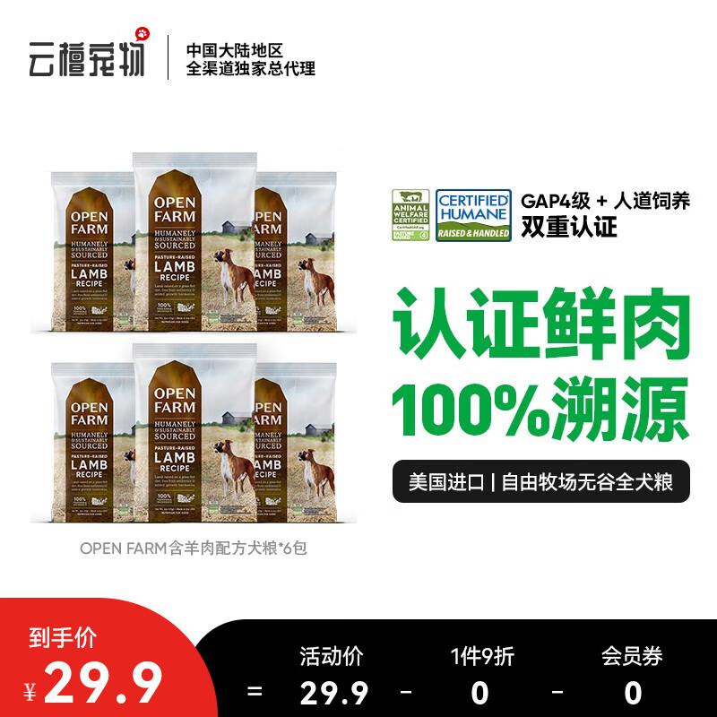 OPEN FARM自由牧场进口狗粮经典系列成犬幼犬通用 羊肉*6包-【效期至23年8月】