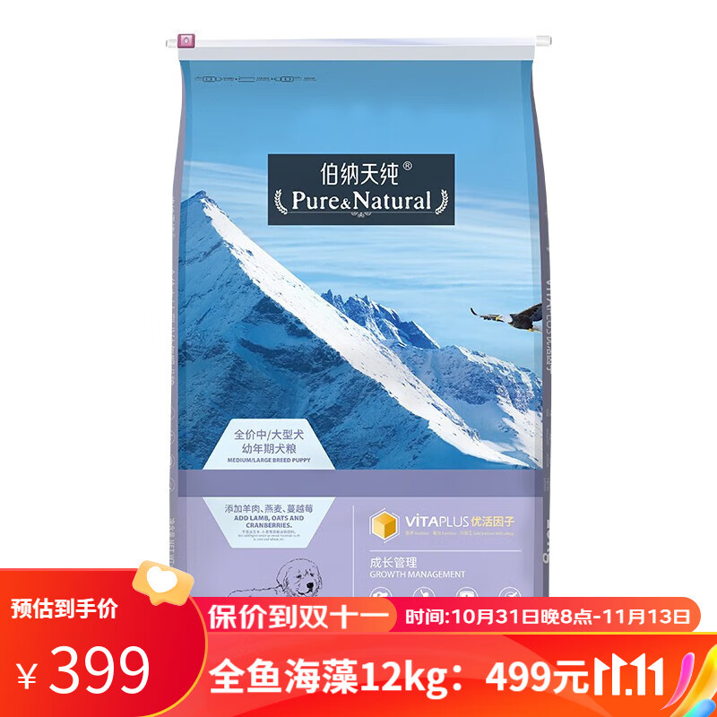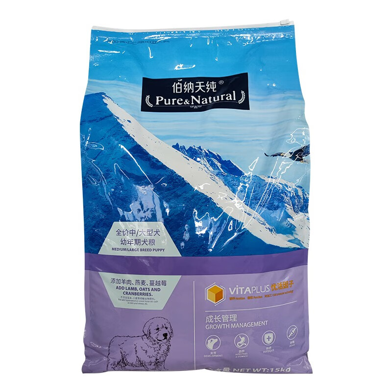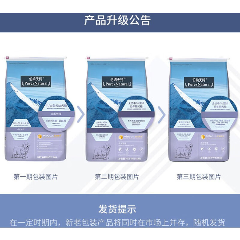 伯纳天纯狗粮15kg大型犬金毛拉布拉多边牧萨摩耶通用全价犬粮30斤 中大型犬幼犬15kg