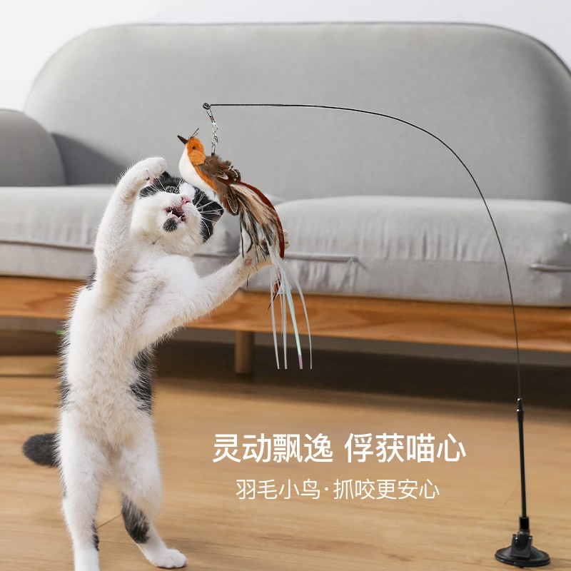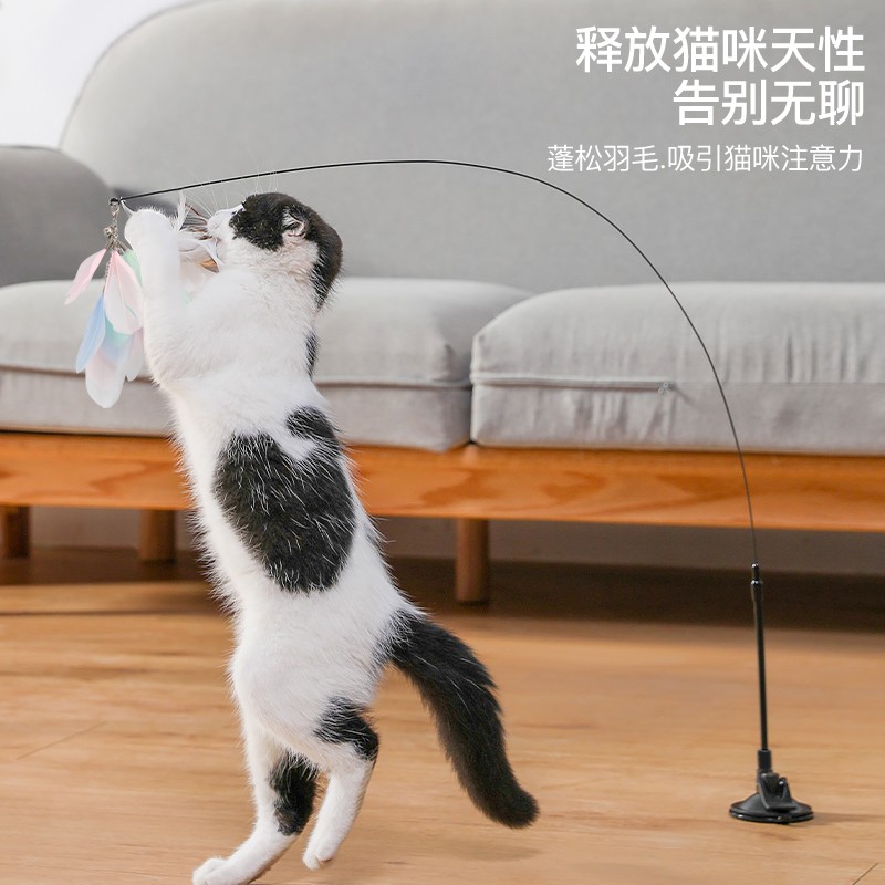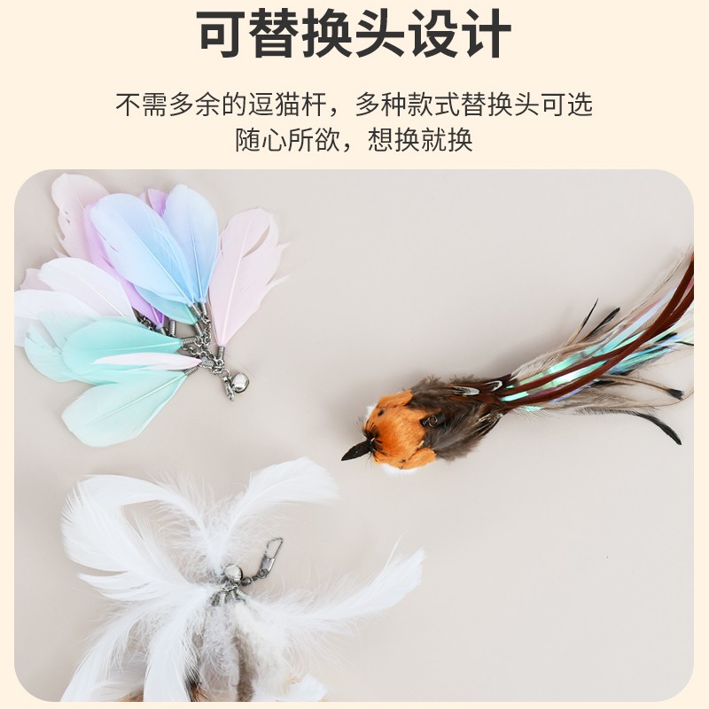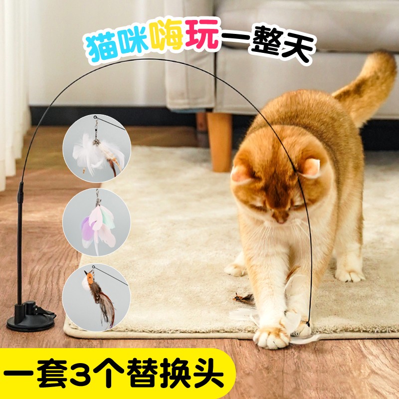迪普尔【三种替换头】 逗猫棒猫玩具羽毛猫咪玩具自嗨杆超长小猫的玩具宠物伸缩幼猫长杆钢丝吸盘互动用品