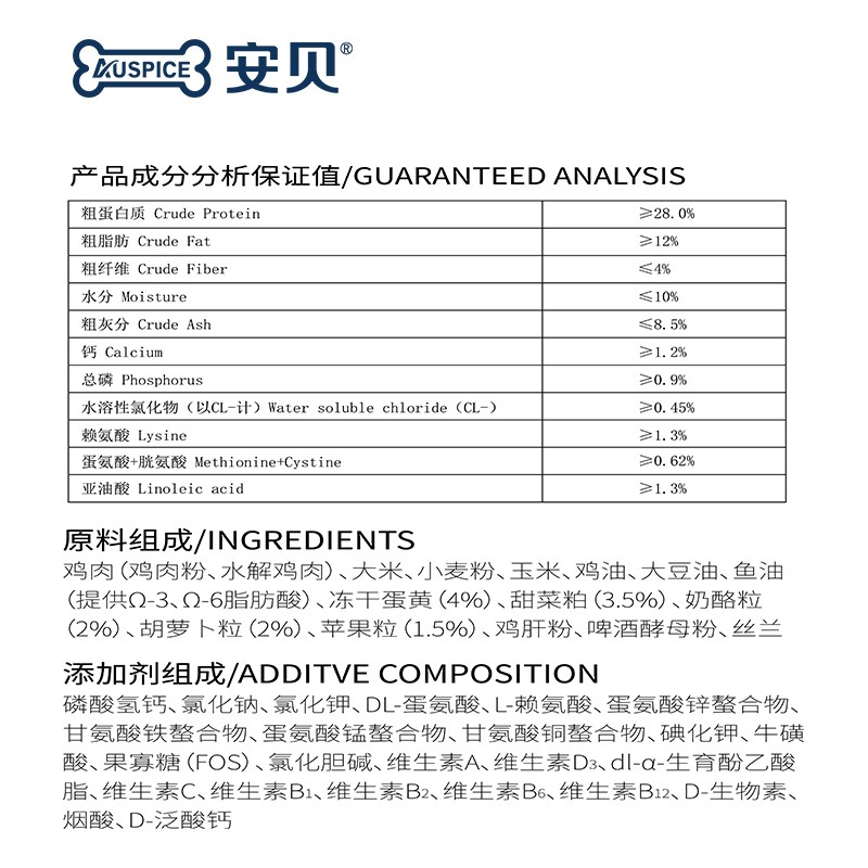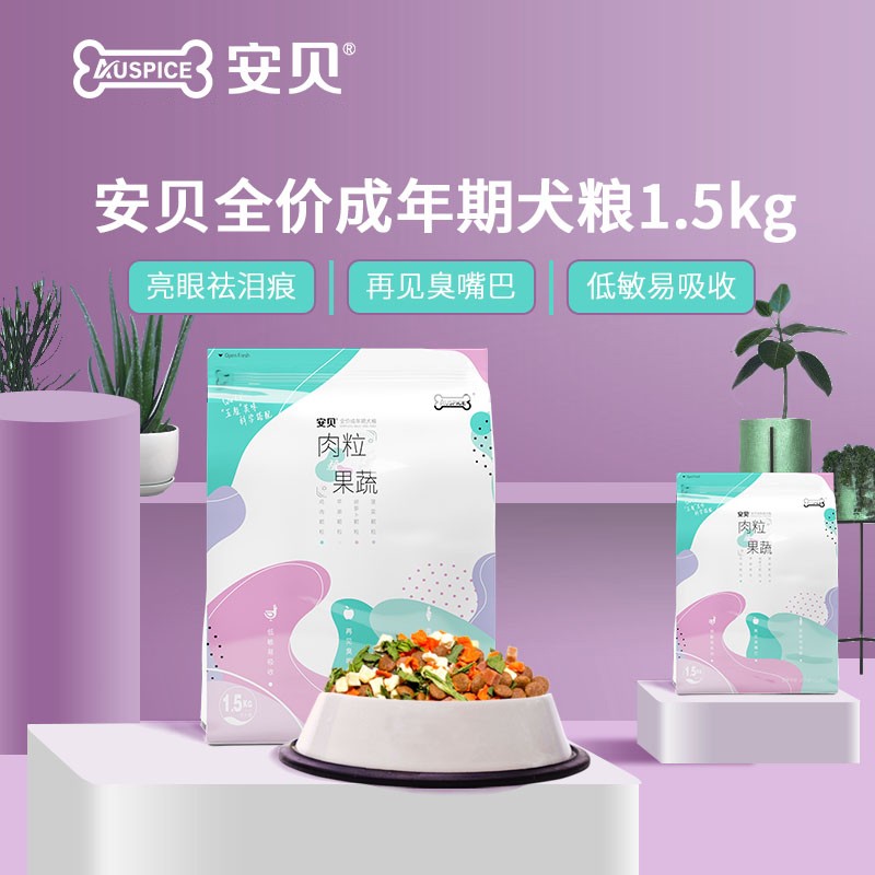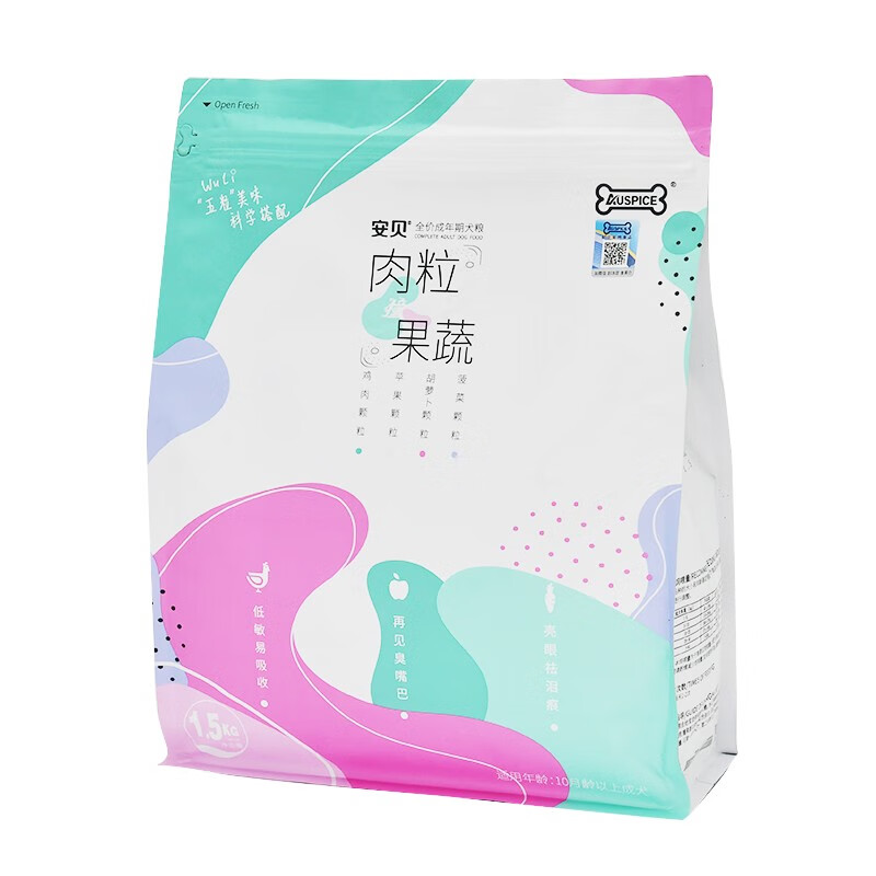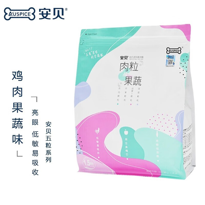 安贝(Auspice)狗粮宠物犬粮五粒牛肉鸡肉泪痕消全价小型犬幼粮皮毛护理呵护肠道 鸡肉果蔬1.5公斤