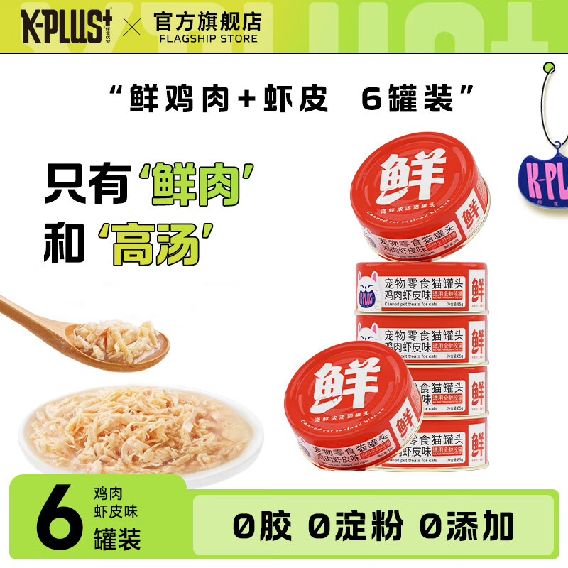 K-PLUS 猫罐头主食湿粮罐头猫咪零食 鲜肉浓汤补水鸡肉整箱 鸡肉 虾皮味6罐