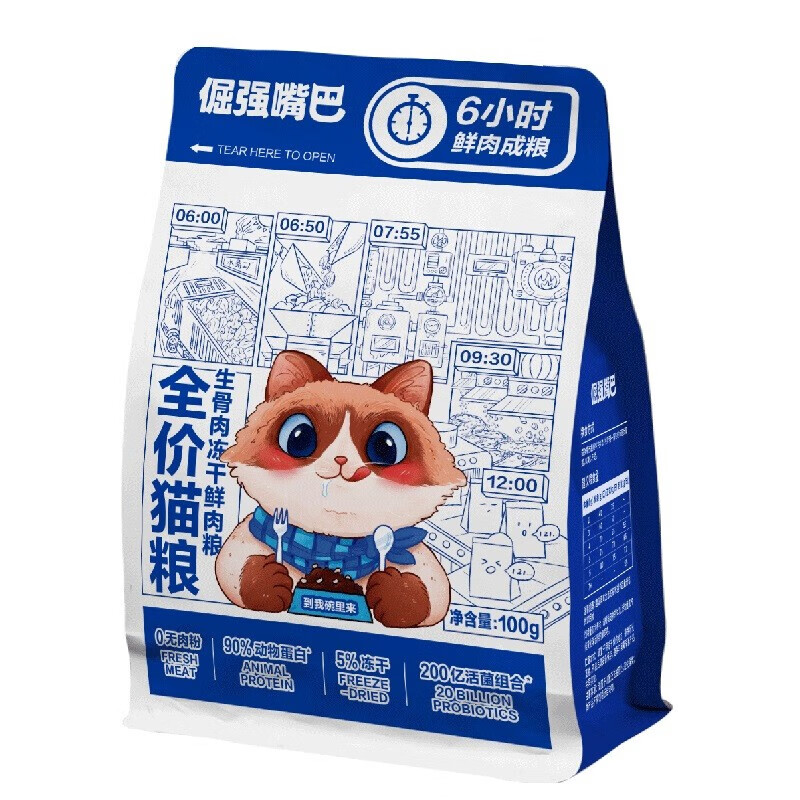 倔强嘴巴无谷生骨肉冻干猫粮鲜肉0肉粉益生菌毛发亮全价全期猫粮 试吃装100g