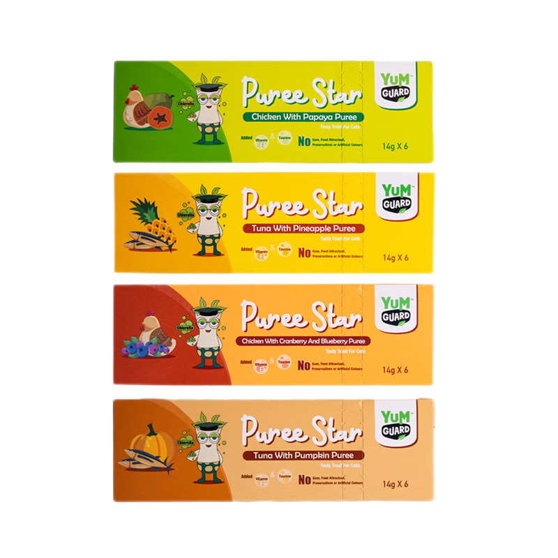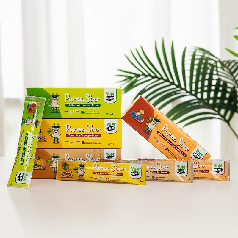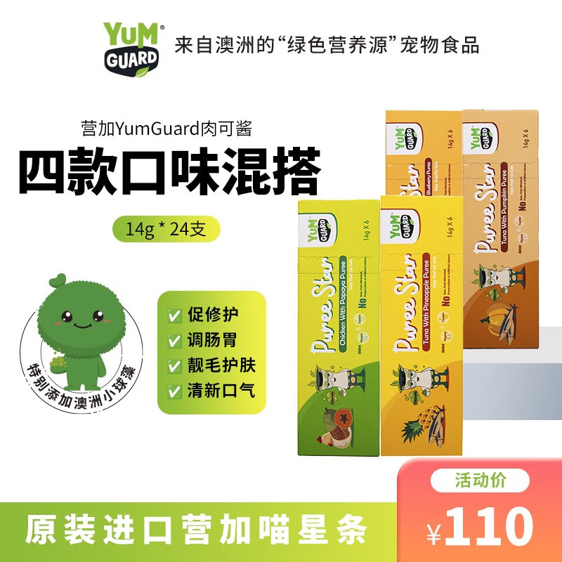 营加(YumGuard)原装进口猫零食猫条 宠物湿粮 猫咪果泥 添加澳洲小球藻 4种口味(混搭)14g*24支
