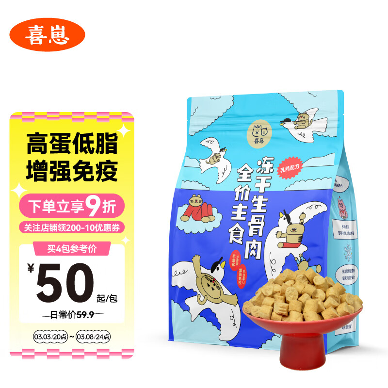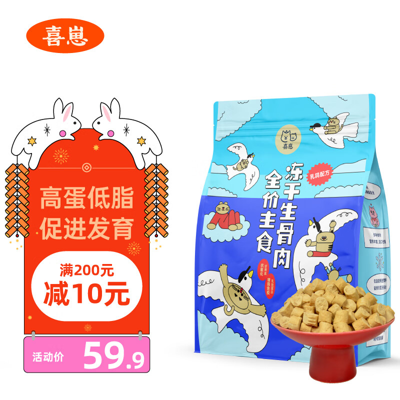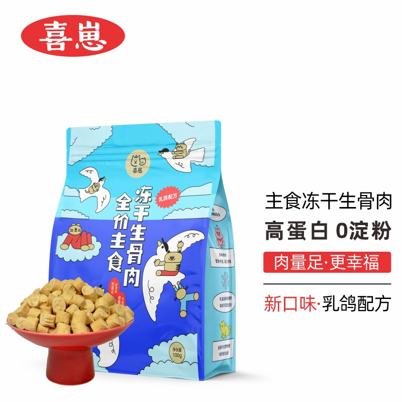 喜崽 主食冻干生骨肉补充营养猫咪全价幼猫零食猫粮成猫 乳鸽口味100g