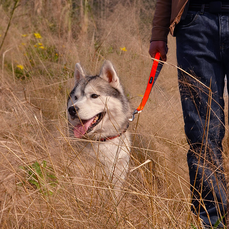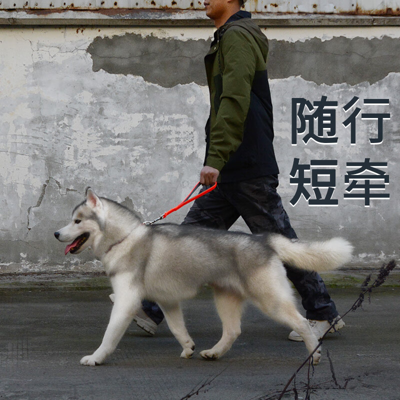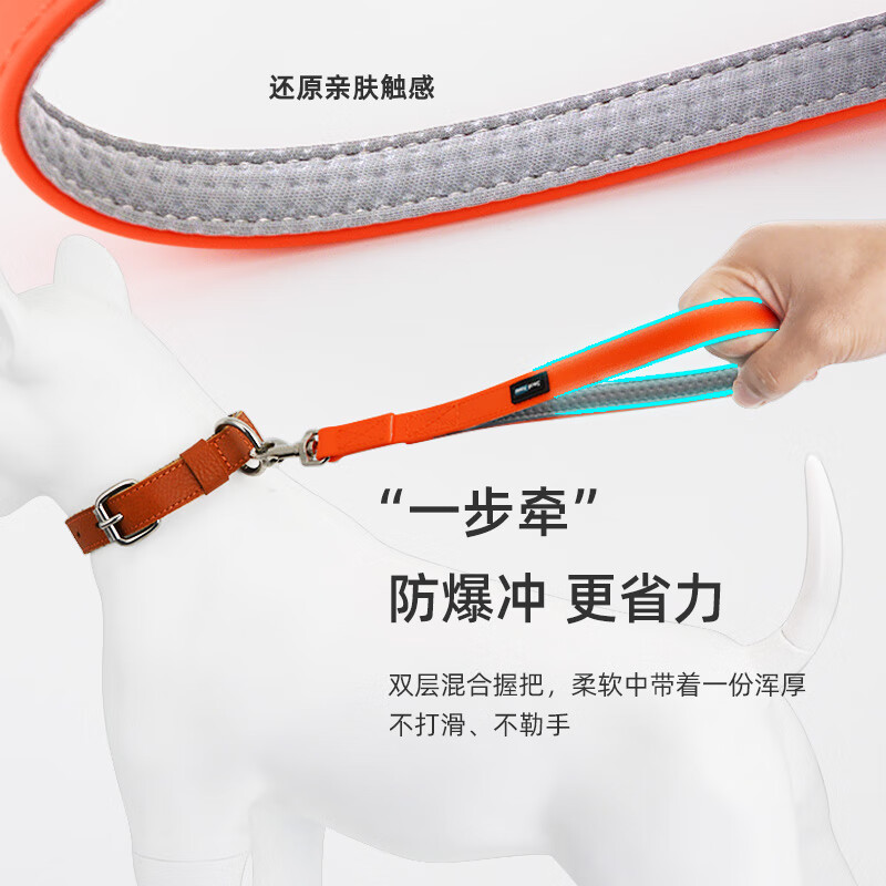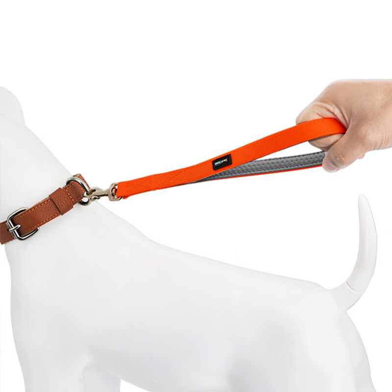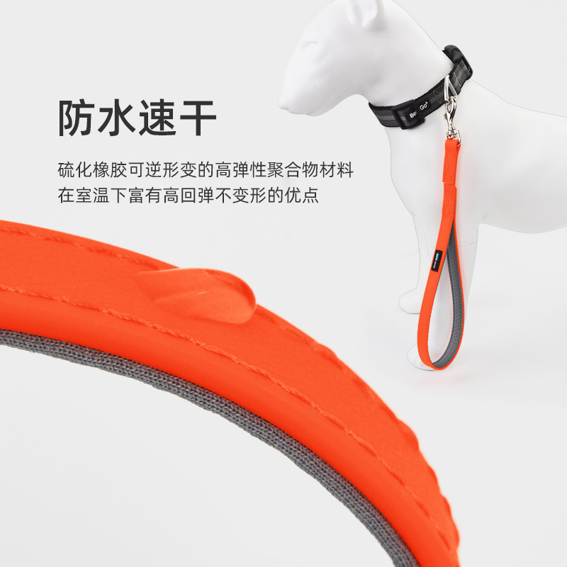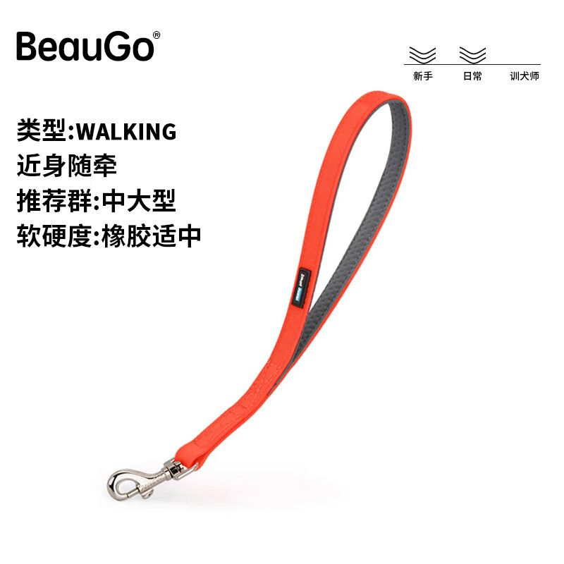 BeauGo防水橡胶宠物狗狗牵引绳中大型犬训练训犬一步牵短绳35CM 朱砂橙 19mm宽度 L号