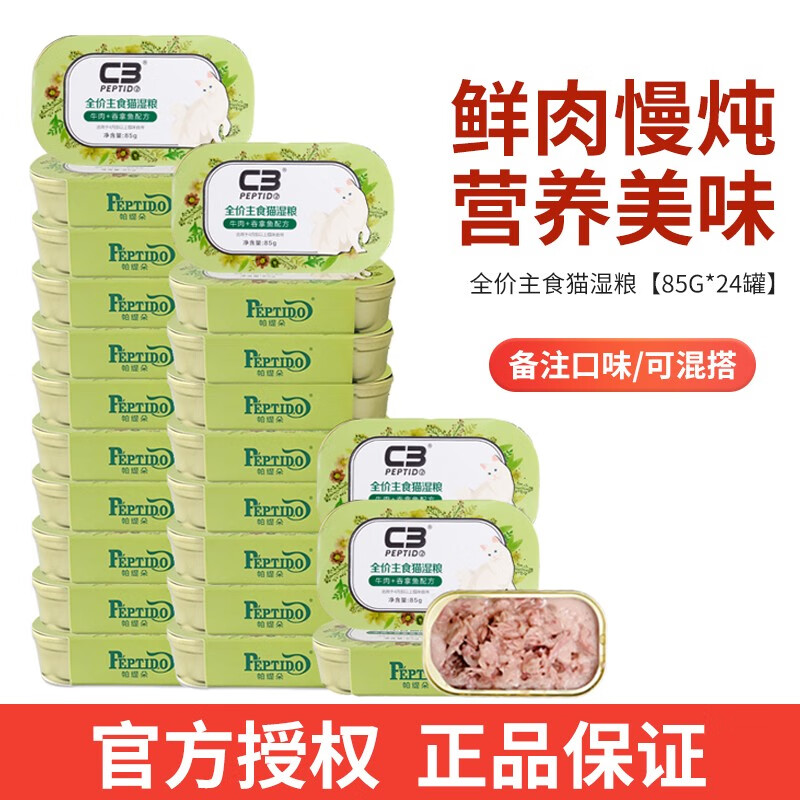 C3 PEPTIDO帕缇朵猫罐头全价猫湿粮成幼猫营养发腮主食牛肉鸡鱼肉浓汤补水 混合口味85g*24(可备注)