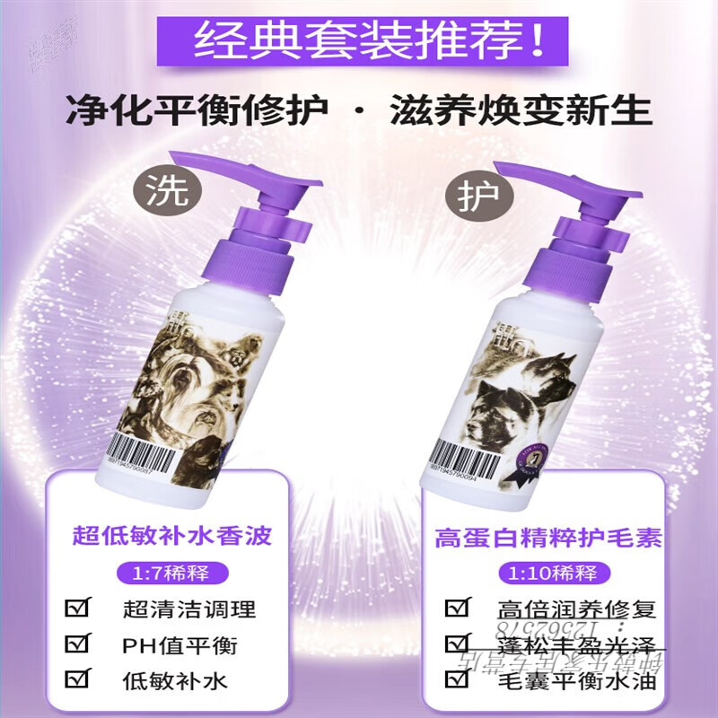 派乐特宠物狗狗猫香波护毛素旅行套装50ml*2瓶白毛幼犬 【经典套装】超低敏补水香波 高