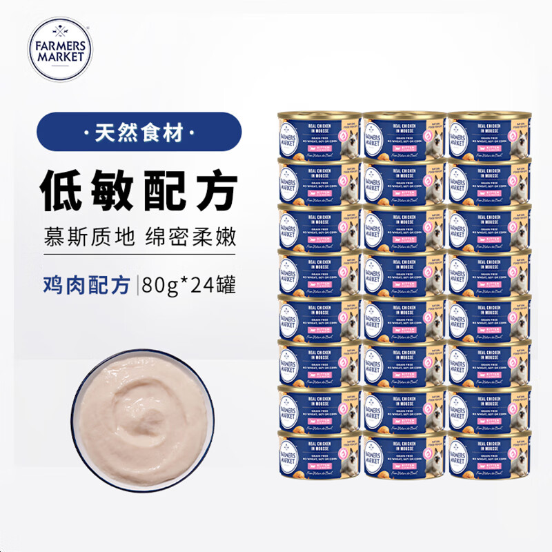 Farmers Market原装进口猫零食罐头慕斯奶糕鸡肉配方80g*24罐整箱装