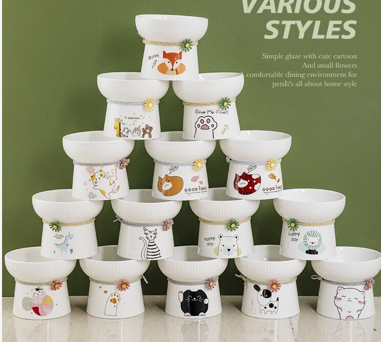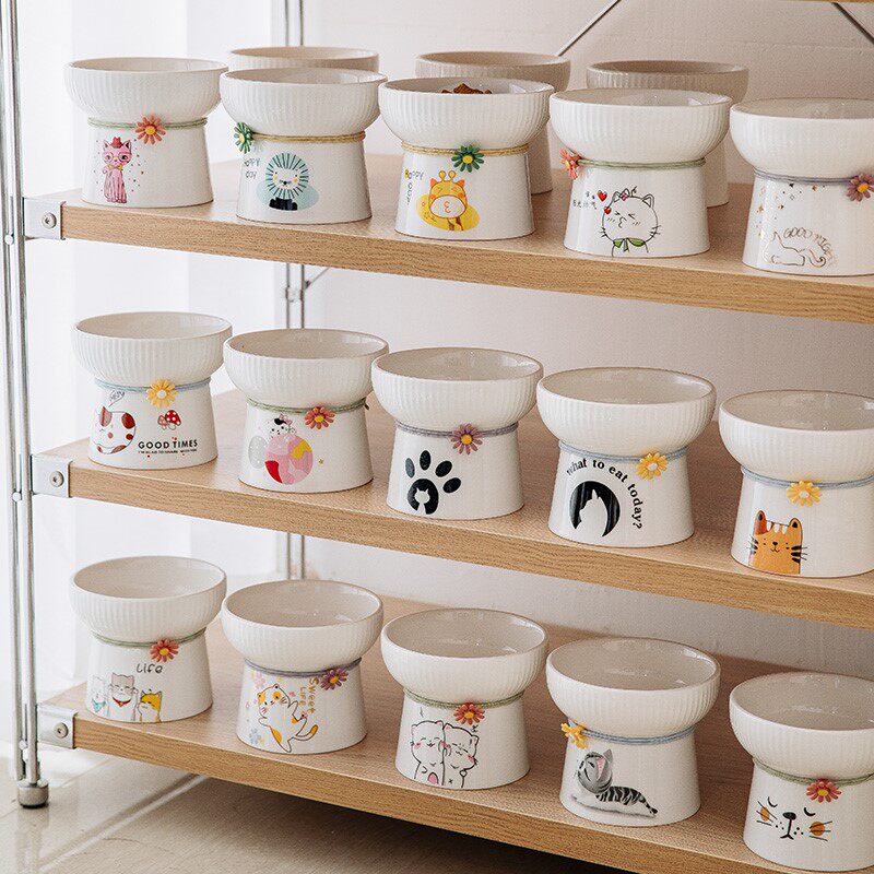 猫碗宠物陶瓷猫盆可爱饮水碗猫粮碗宠物碗日式高脚护颈狗狗一体碗