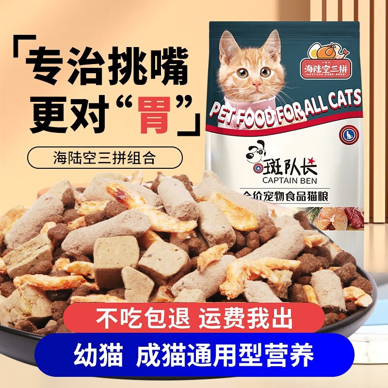 斑队长【冻干含量≥5%】幼猫成猫全阶段适用营养增肥补钙鱼肉味冻干猫粮 海陆空三拼-10斤装