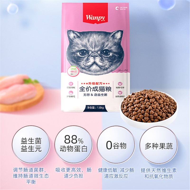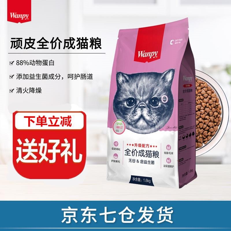 Wanpy顽皮成猫粮蓝猫布偶成猫猫粮去毛球无谷低敏天然猫粮 1.6kg