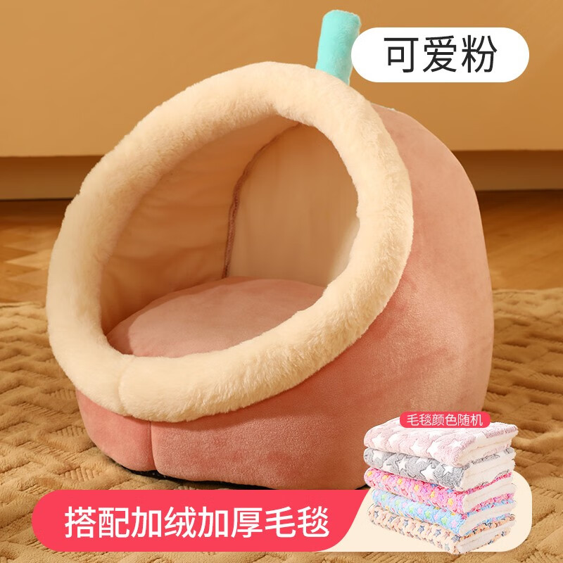 Kimpets猫窝冬天保暖半封闭冬季加厚猫房子小型犬网红大猫窝四季通用狗窝 粉色桃子款 星星垫子 L【多只猫咪睡15斤内狗】超大空间30%的宠妈选择