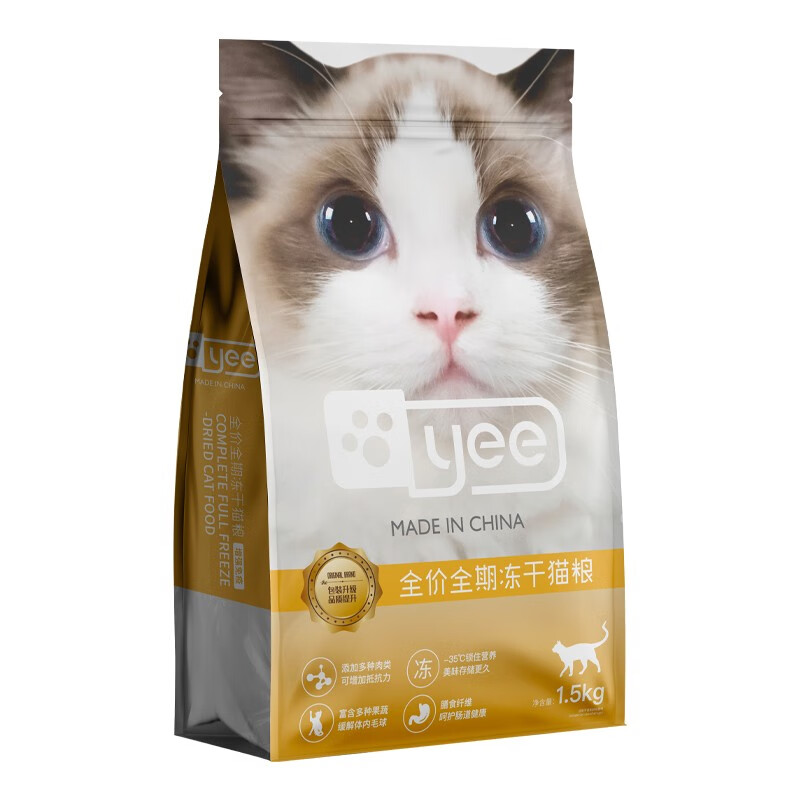 YEE猫粮全期成猫幼猫奶糕营养增肥发腮全价冻干肉松双拼主粮1.5kg 全价全期冻干猫粮10kg