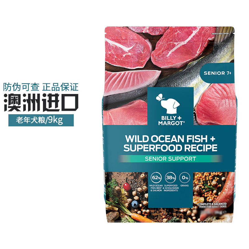 比利玛格狗粮澳洲进口犬粮干粮三文鱼牛肉羊肉袋肉无谷泰迪金毛小中大型犬 高龄老年犬专用9kg-24年6月