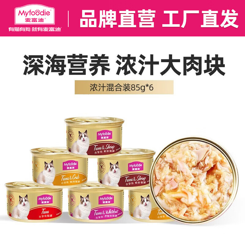 麦富迪 猫罐头 白肉罐头成幼猫通用猫咪零食湿粮 浓汁混合装85g*6
