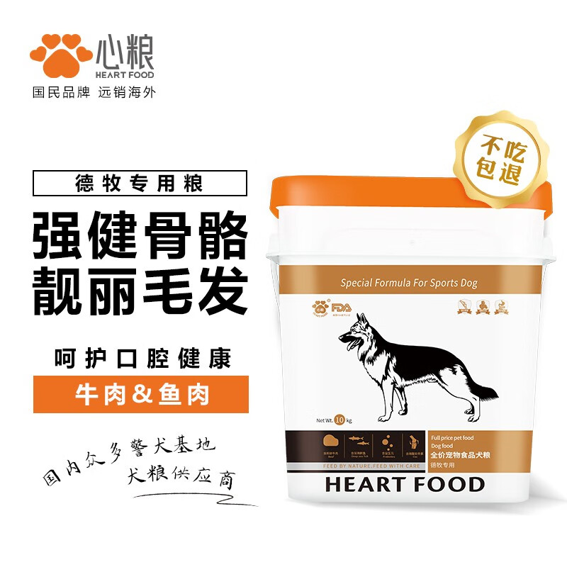 心粮 全价德牧专用狗粮10kg 大型成犬通用 金毛拉布拉多哈士奇也爱吃 牛肉