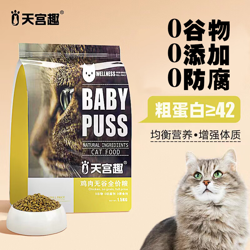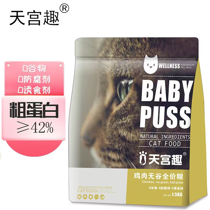 天宫趣 猫粮幼猫成猫无谷鸡肉布偶蓝猫橘猫加菲英短猫咪全价粮1.5KG