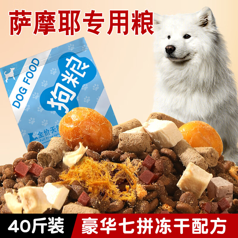 味卡鲜白毛萨摩耶狗粮专用幼犬粮成犬肉松冻干40斤装20kg补钙天然粮 【萨摩耶】豪华七拼40斤
