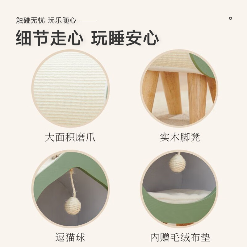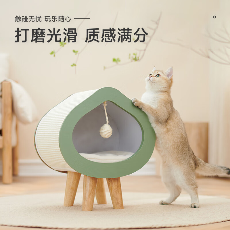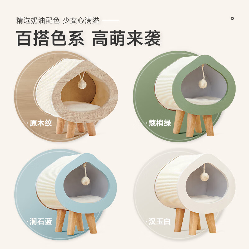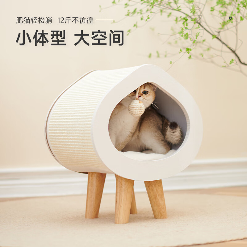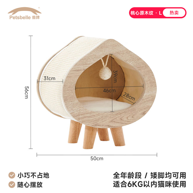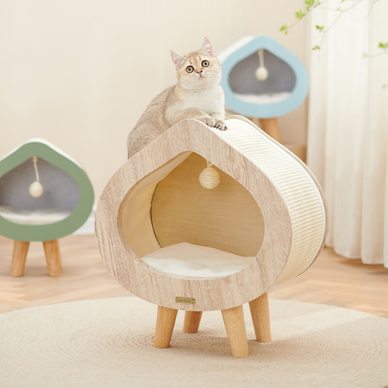 兽牌 桃心实木猫窝冬季保暖宠物床封闭式可拆洗猫床网红宠 原木纹【冬季猫窝】 L号【适合12斤内猫/小型犬】