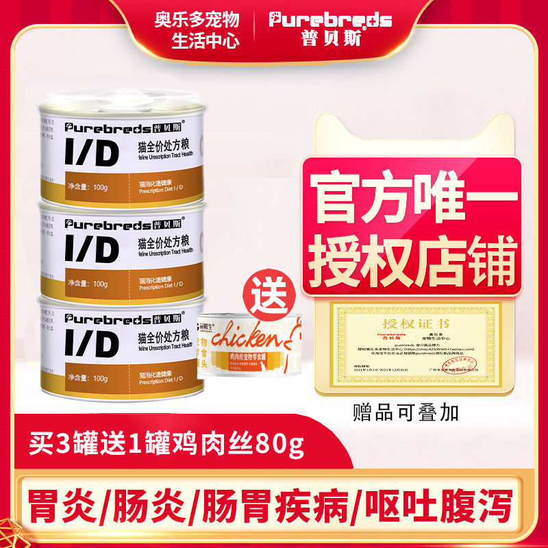 普贝斯猫处方罐头肠道调理猫瘟腹泻软便胰腺炎胃消化护理100g 【普贝斯ID罐头】猫100g*3罐