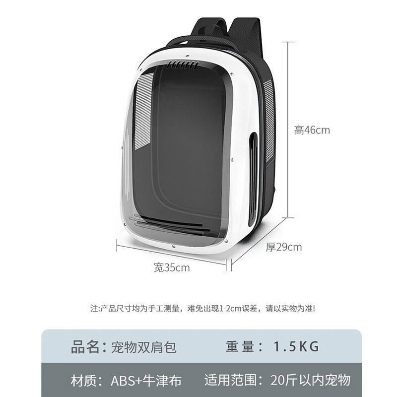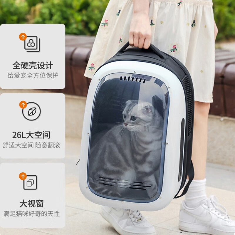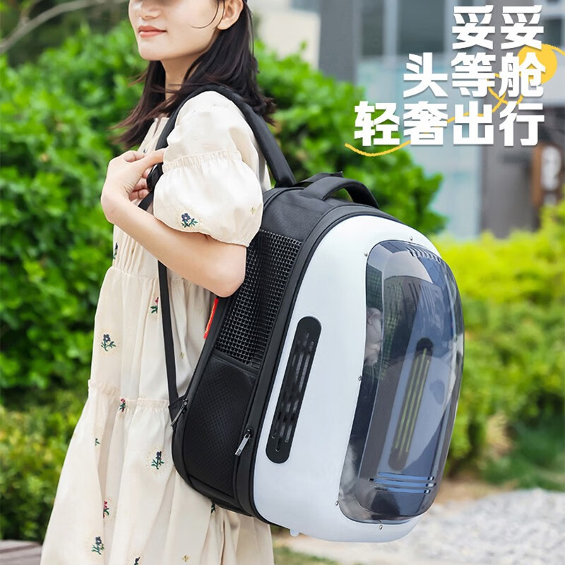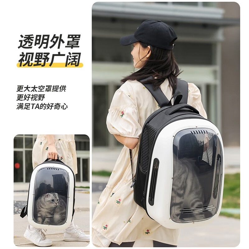 共度(Gong Du)宠物背包便携带猫包泰迪小狗狗双肩猫包猫书包喵笼子太空舱航空箱 白黑色 升级透明外罩大视窗