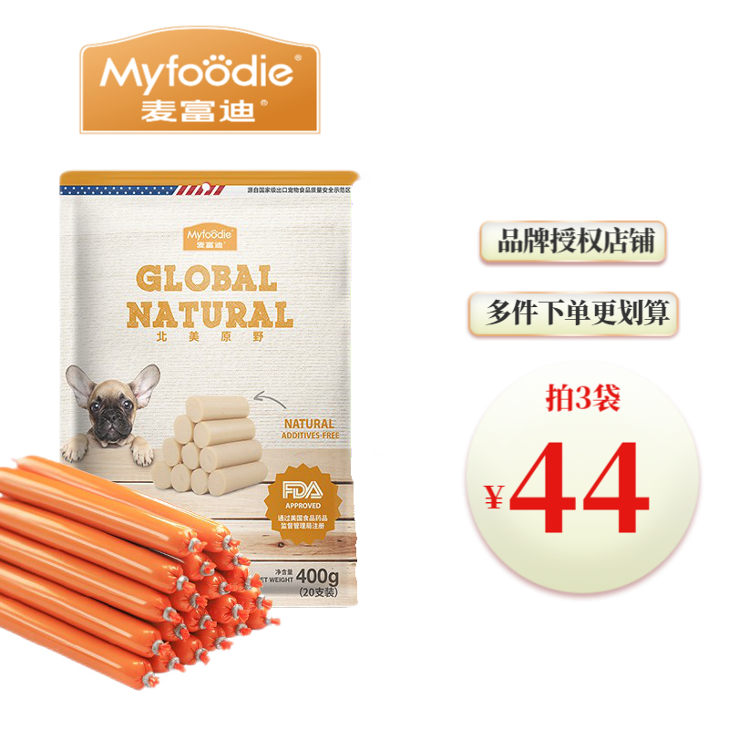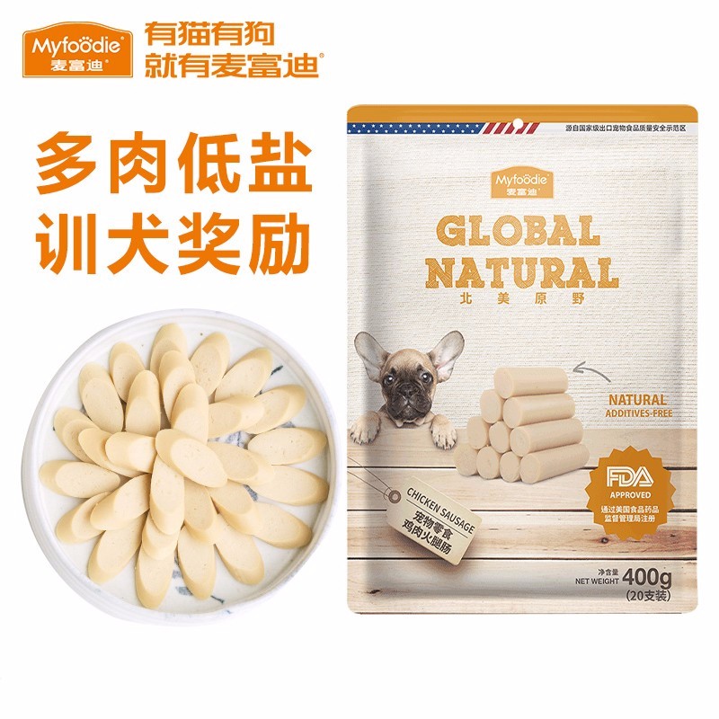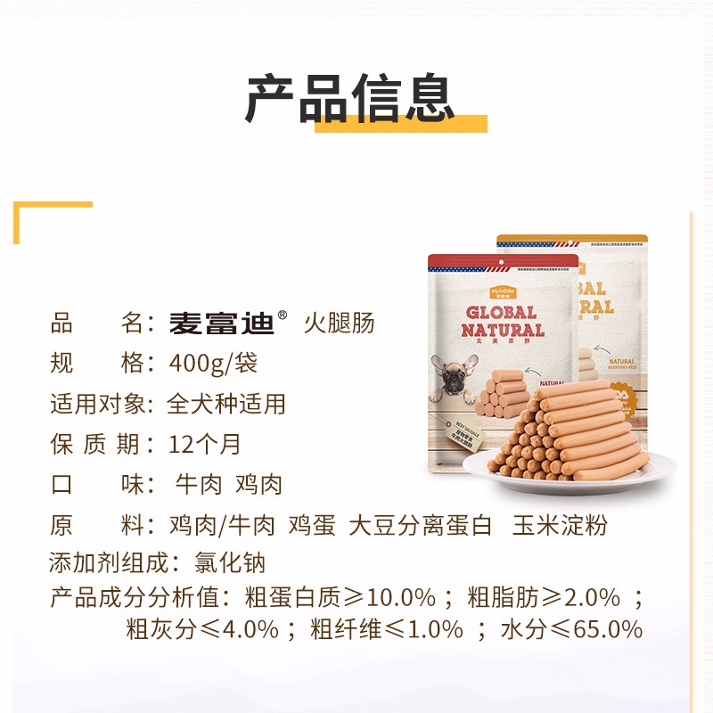 麦富迪 宠物狗狗泰迪磨牙肉粒训练奖励零食肉干 鸡肉火腿肠400g