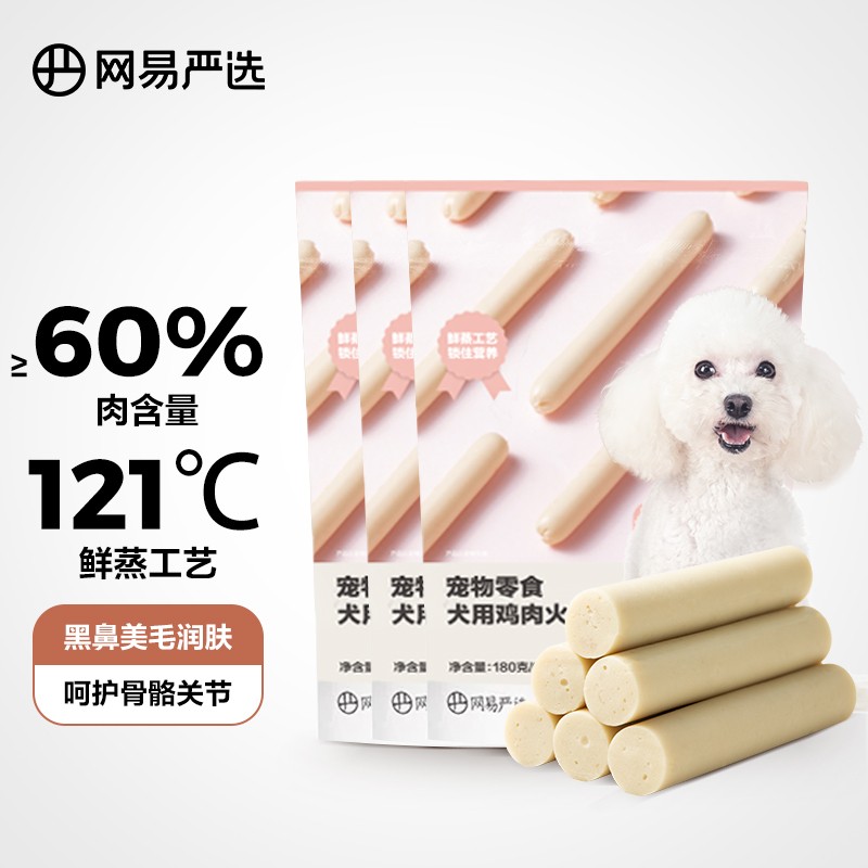 网易严选 鸡肉火腿肠 宠物食品幼犬成犬训练奖励训犬搭档营养零食 柯基柴犬泰迪博美贵宾犬 180克*3袋