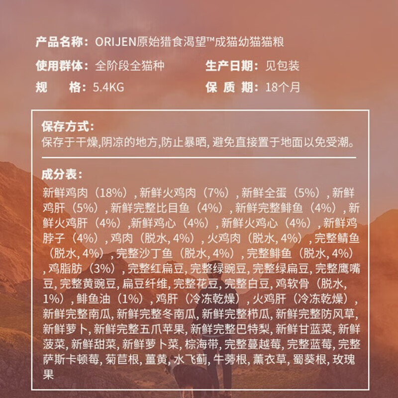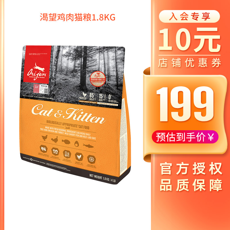 Orijen 渴望全猫粮加拿大进口无谷鸡肉鱼配方成猫幼猫临期9月 鸡肉猫粮3.6斤