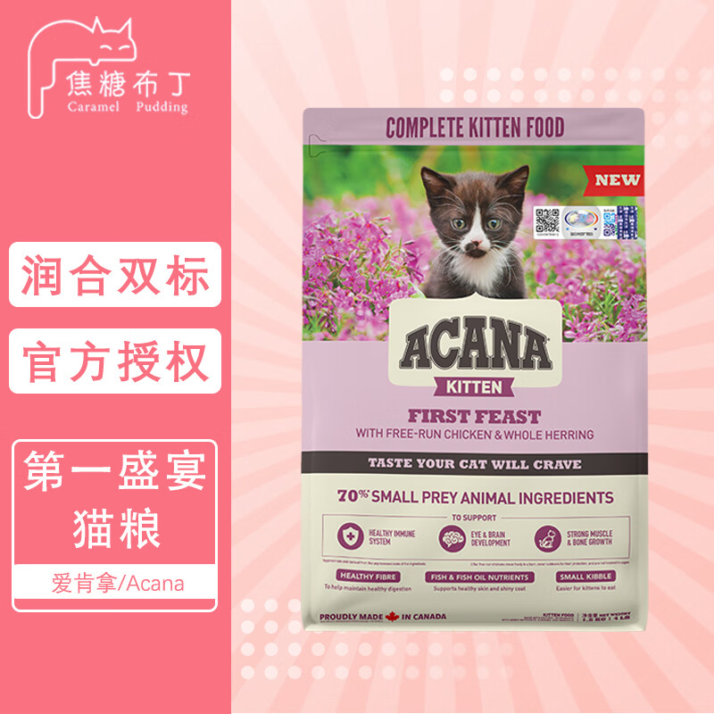 Acana爱肯拿猫粮鸡肉鱼肉幼猫1.8kg丰收家园全阶段5.4kg无谷成猫增肥发腮美毛调理肠胃进口 第一盛宴(鸡肉燕麦,加拿大版,适合4-12月幼猫) 1.8kg