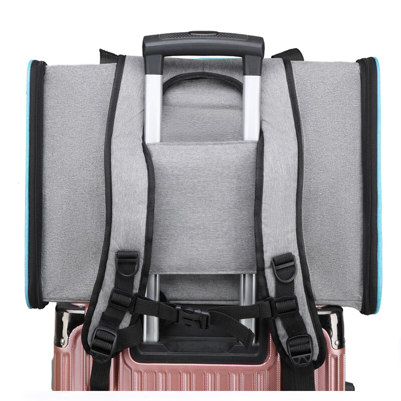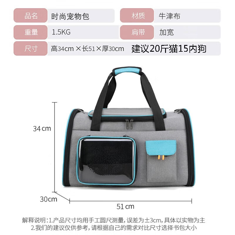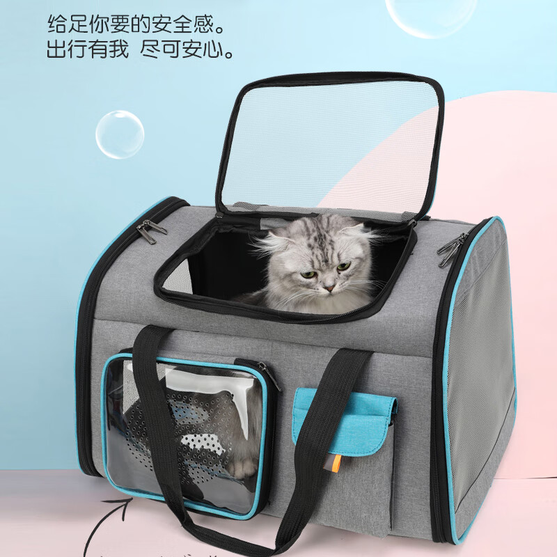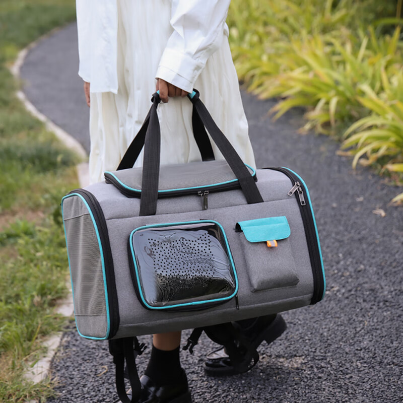 贝尼豆 猫包外出 手提双背一体透气猫咪背包狗包 灰拼蓝色支撑垫板