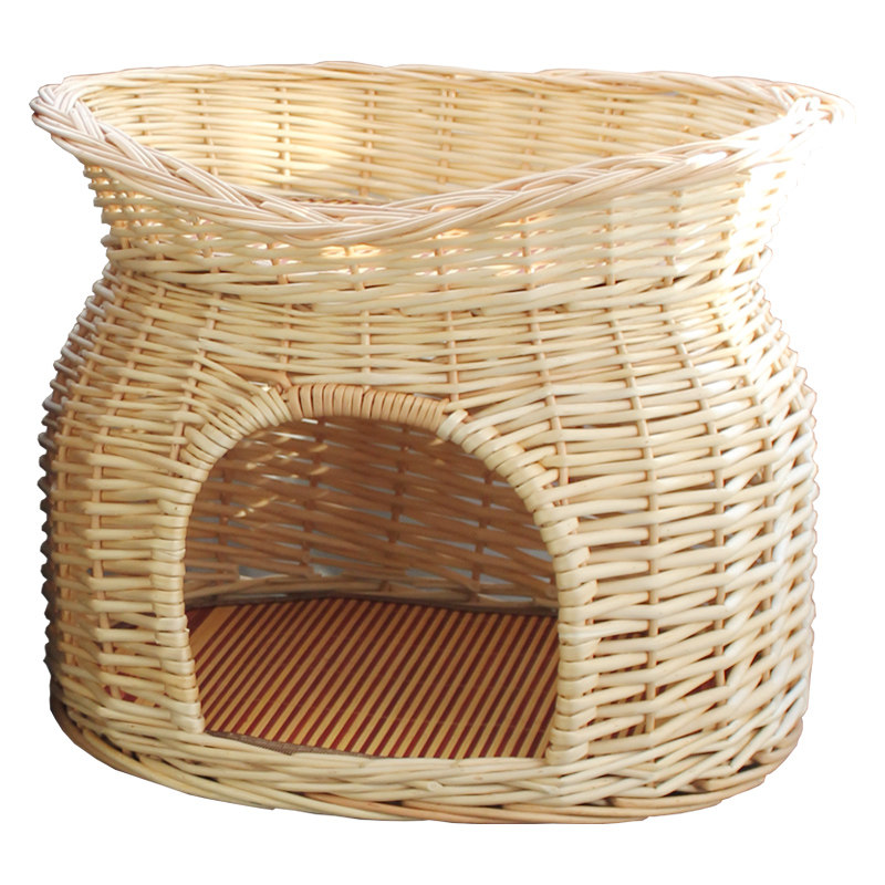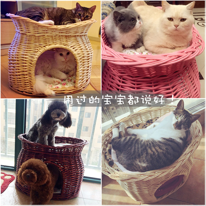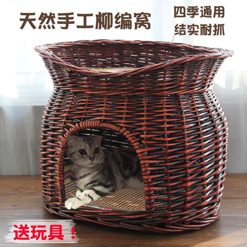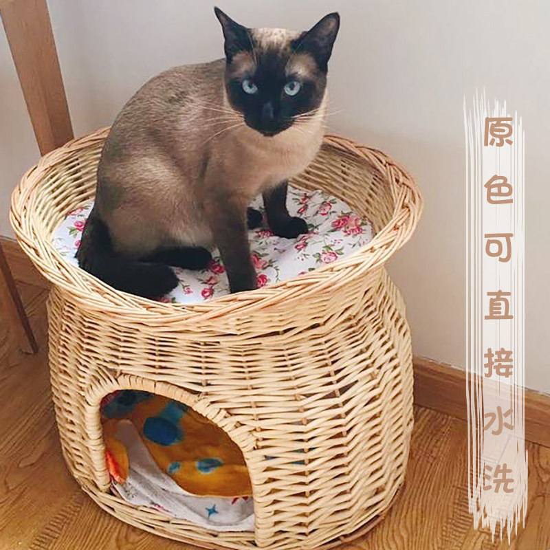 藤编猫窝四季双层猫屋别墅房子博美泰迪狗窝柳编宠物窝可拆洗封闭