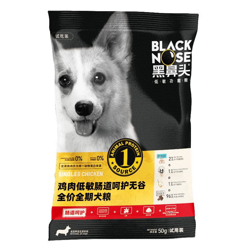黑鼻头狗粮肠胃专用泰迪比熊博美边牧金毛成幼犬全价通用型 全期-(试吃)肠道呵护50g*3