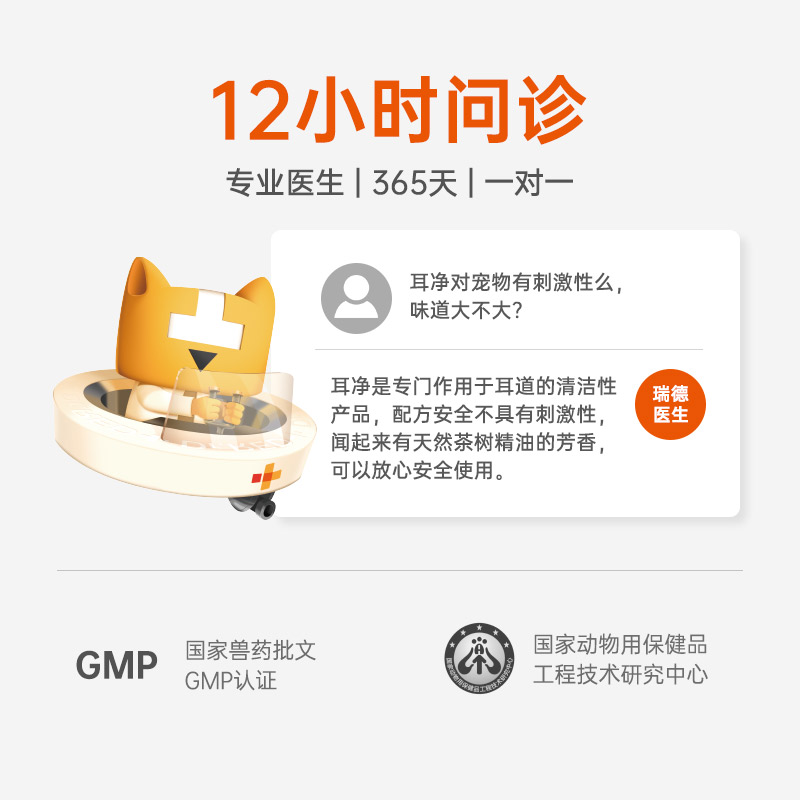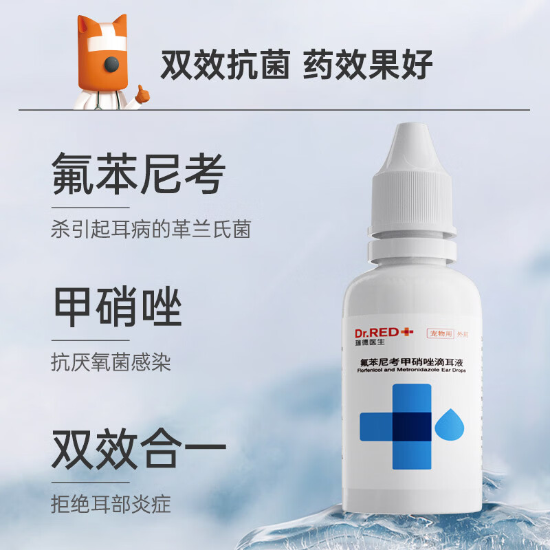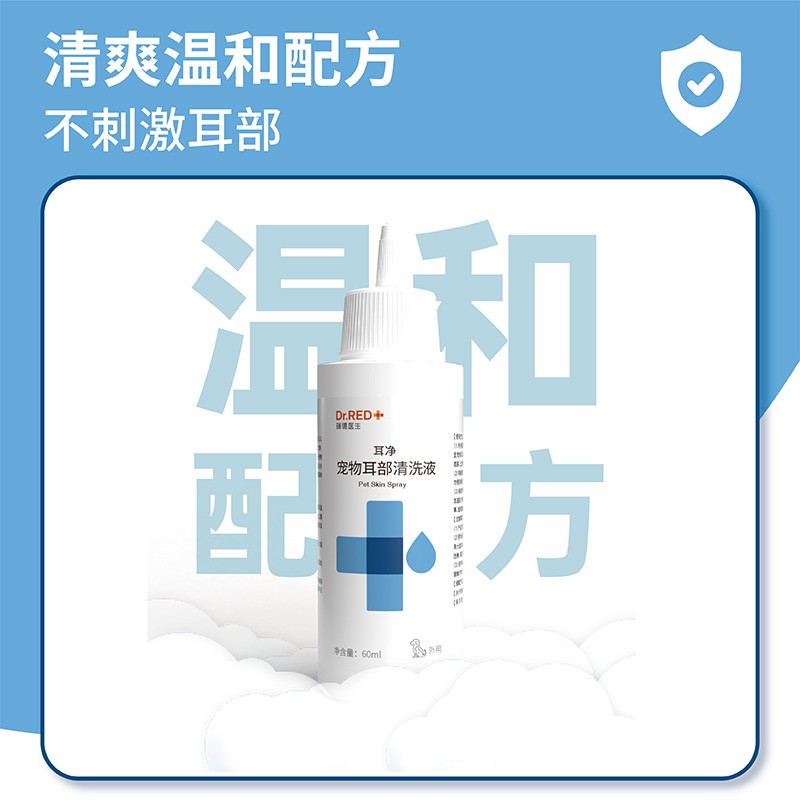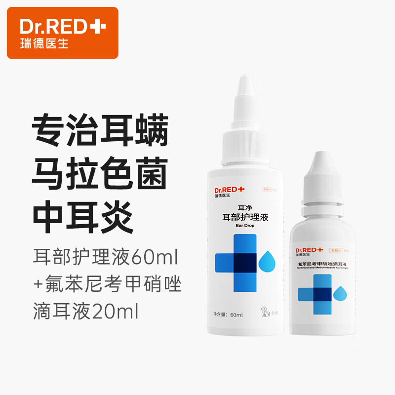 瑞德医生 Dr. Red 耳净猫咪洗耳液狗狗耳朵清洁除耳螨宠物洁耳中耳炎 滴耳液20ml 耳部护理液60ml 两件套