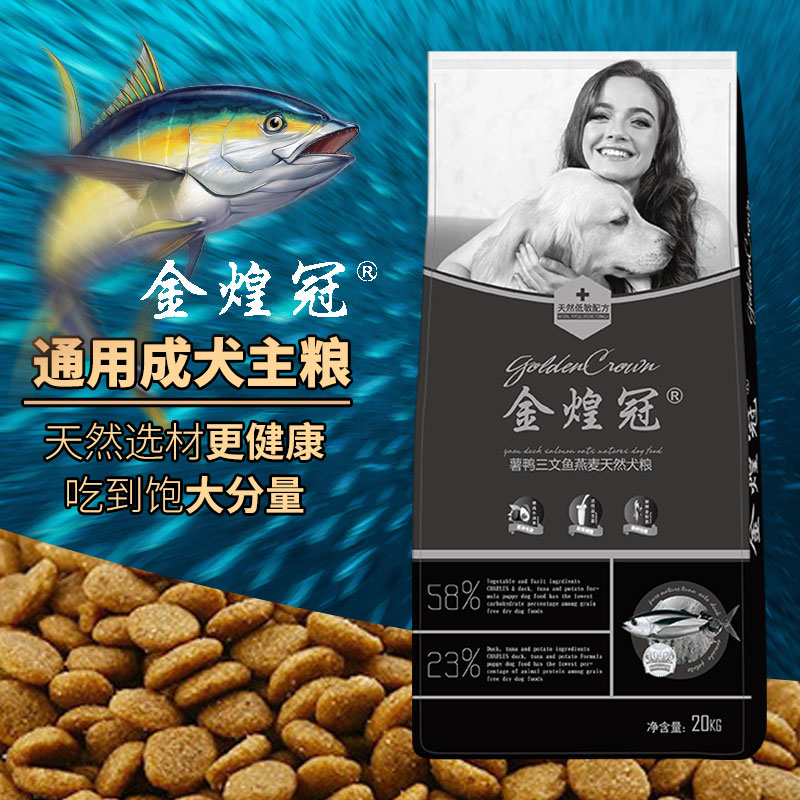 金煌冠 中大型犬通用成犬狗粮20kg40斤装 薯鸭三文鱼燕麦天然犬粮 金毛拉布拉多萨摩耶阿拉斯加德牧