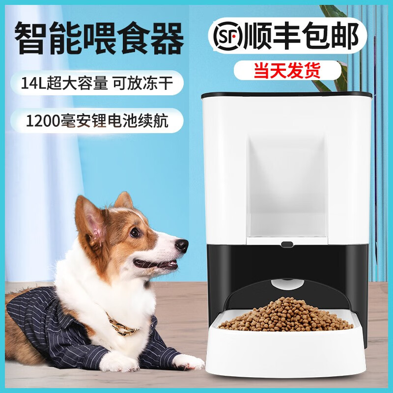 A Tainer14升大容量自动喂食器宠物狗狗可放冻干定时定量猫咪自动投食器 白色