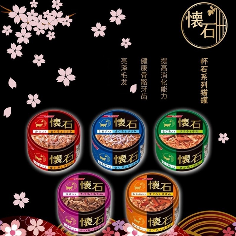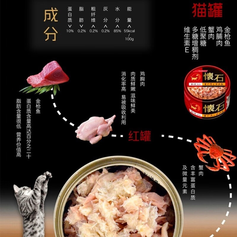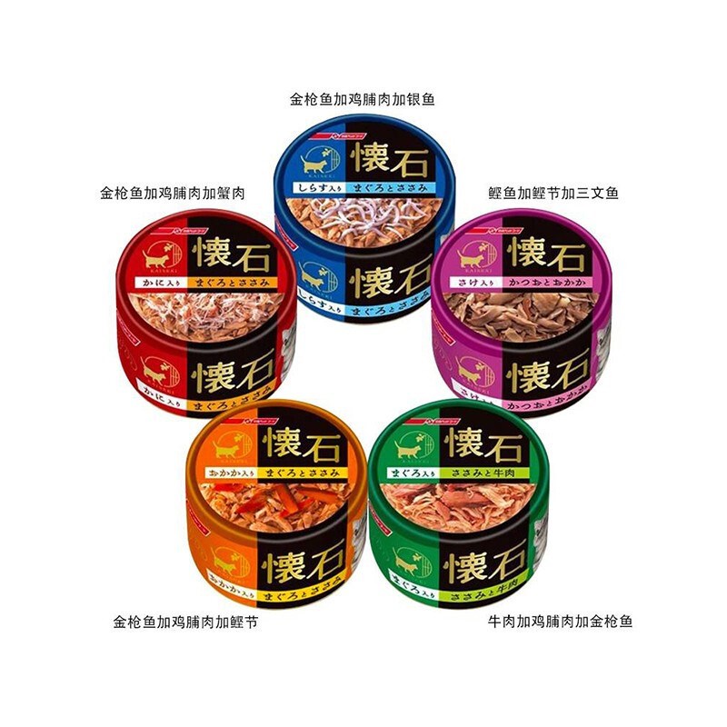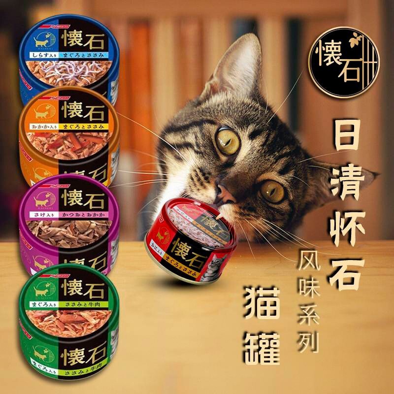 梦动【精选推荐】网红日本原日清怀石猫罐头增肥营养猫零食成猫幼猫湿 金枪鱼 鸡脯肉 银鱼 80g4罐