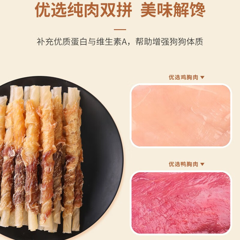 欢动狗零食 牛肉夹心狗狗磨牙棒 幼犬磨牙洁齿骨去口臭 柴犬柯基防拆家逗玩解闷零食 训犬奖励小包装 【共3袋】鸡鸭肉双拼棒240g 全犬型通用