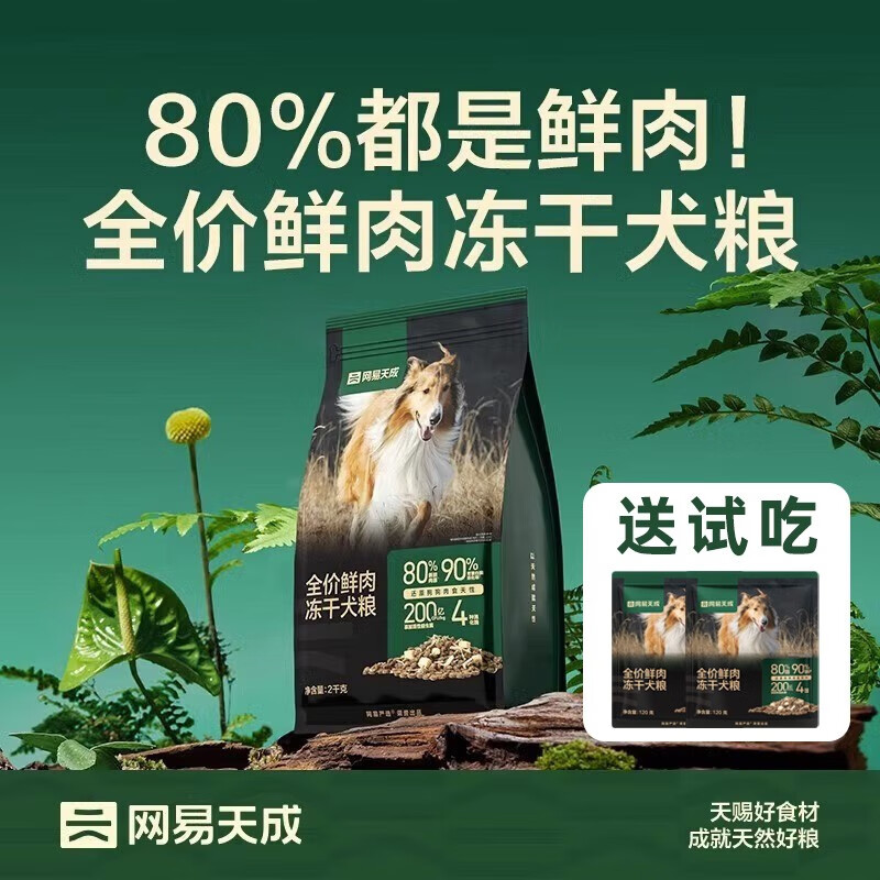 网易天成网易天成狗粮冻干鲜肉狗粮肠胃呵护幼犬无谷低敏大中小型成犬犬粮 (囤货装)鲜肉冻干犬粮10kg 全犬种 全期