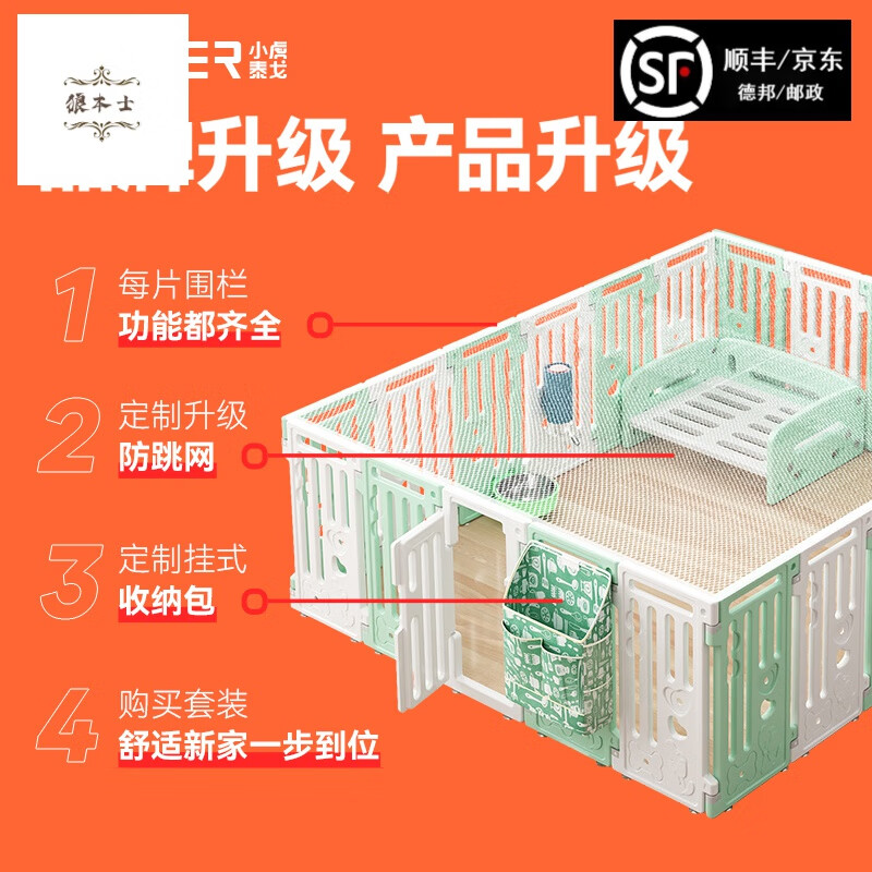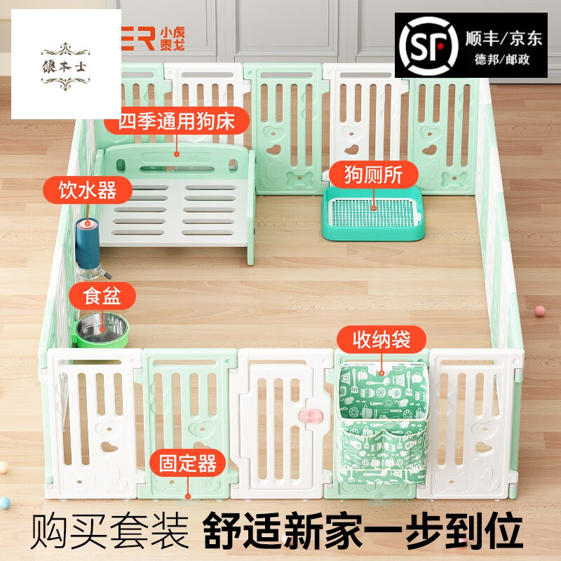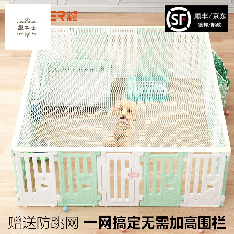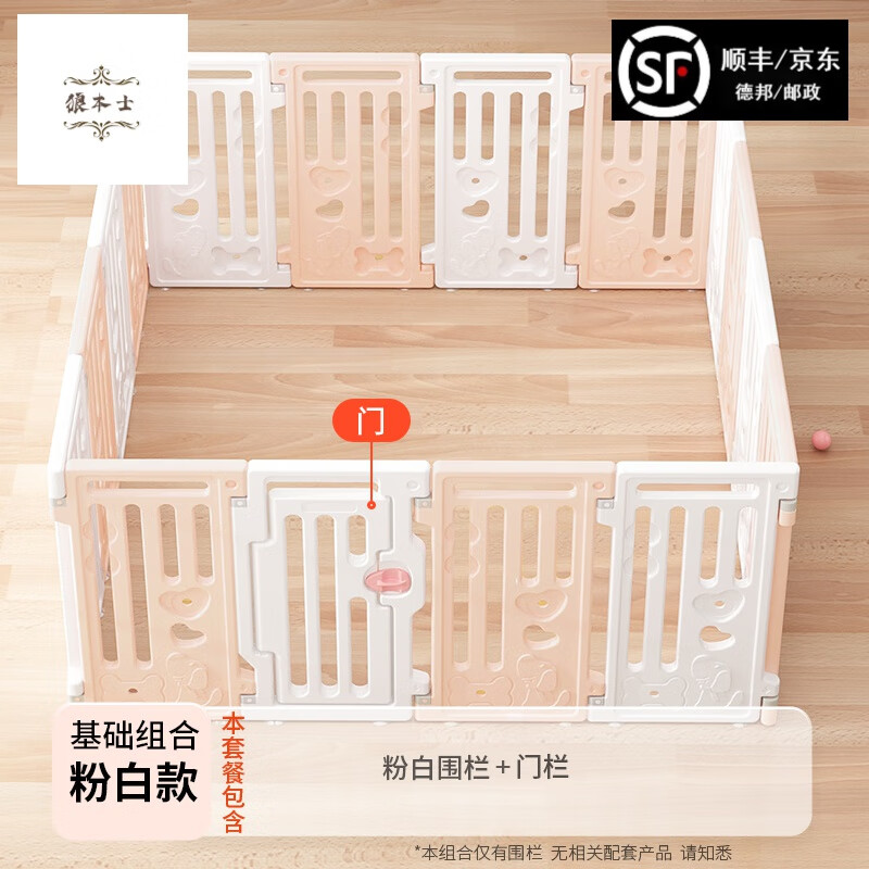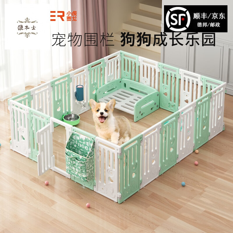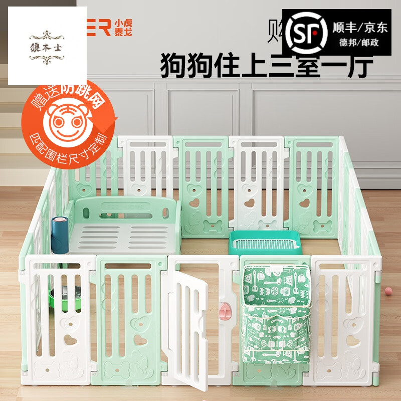 蒂乐森小型犬狗围栏室内外宠物栅栏防越狱带训练厕所阳台自由组合狗笼子 【基础组合】加固-粉白款围栏 19片 1门(长202cm*宽136cm)