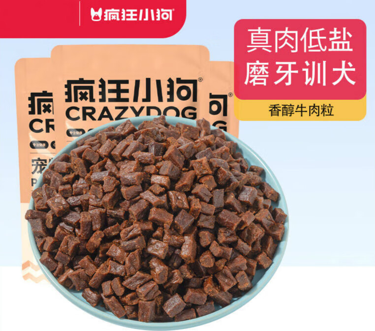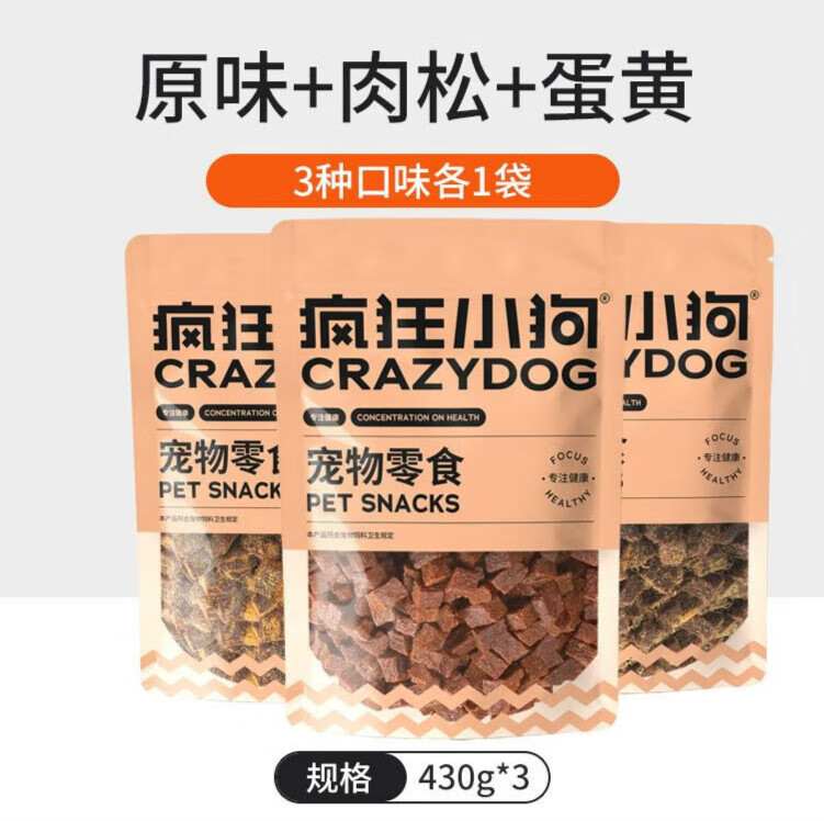 疯狂小狗牛肉粒泰迪金毛幼犬美毛补钙训狗奖励宠物磨牙狗狗零食 3种口味各1袋[430gx3袋] [疯狂小狗 真肉低盐 低盐低脂